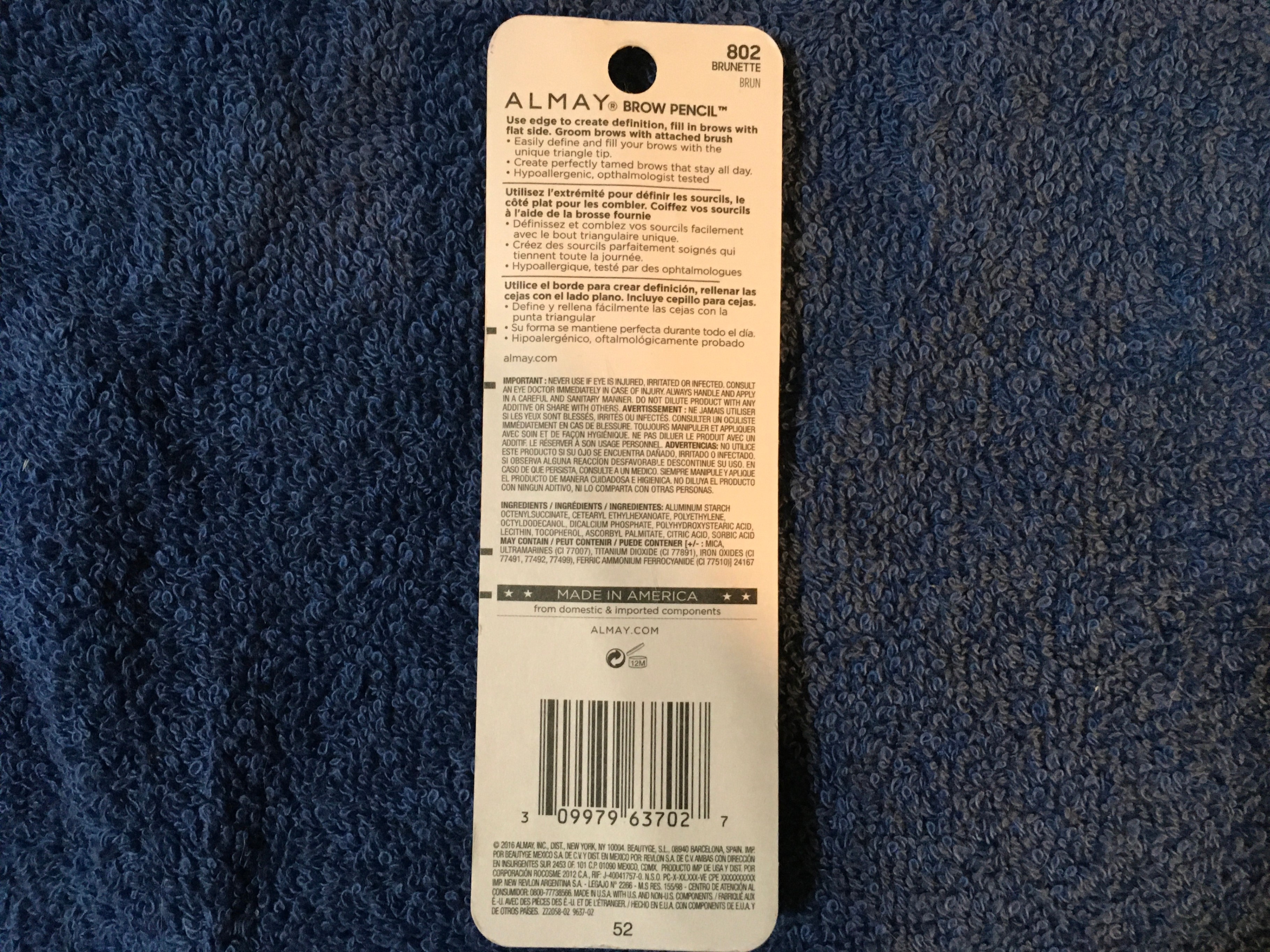 This is a new Almay Brow Pencil in brunette. It defines and fills your brows with a flat side and creates perfectly tamed brows that stay all day. It also includes a brush for grooming