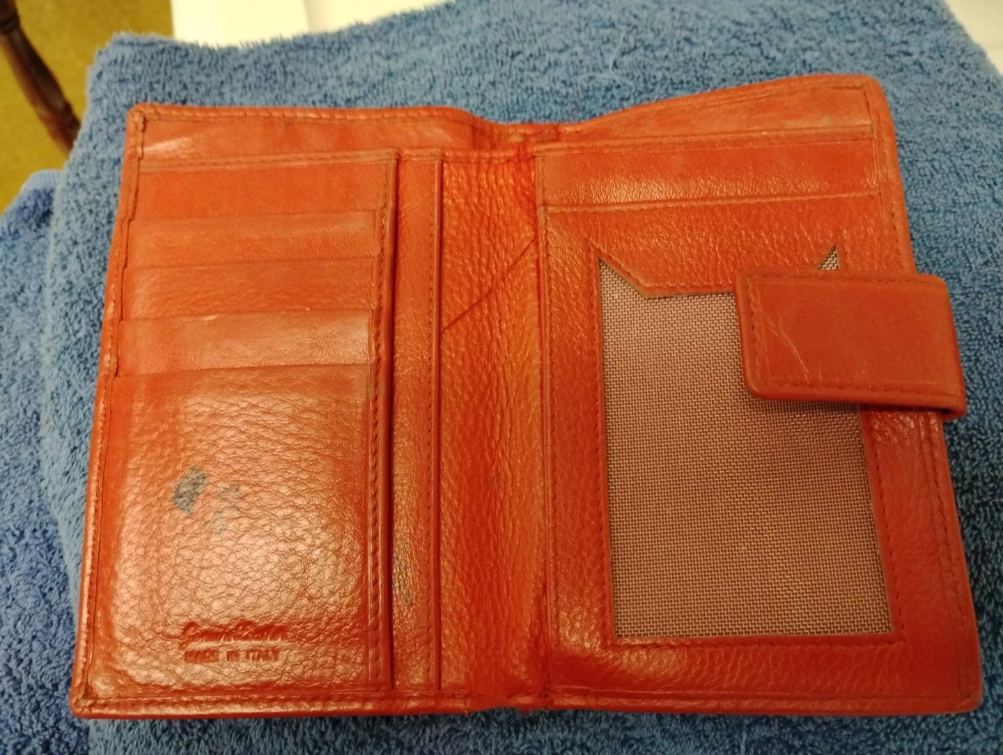 Selling a Gianfranco Ferre wallet in a vibrant red colour. It's made in Italy and crafted from genuine leather. It has some signs of use, but is still in good condition!