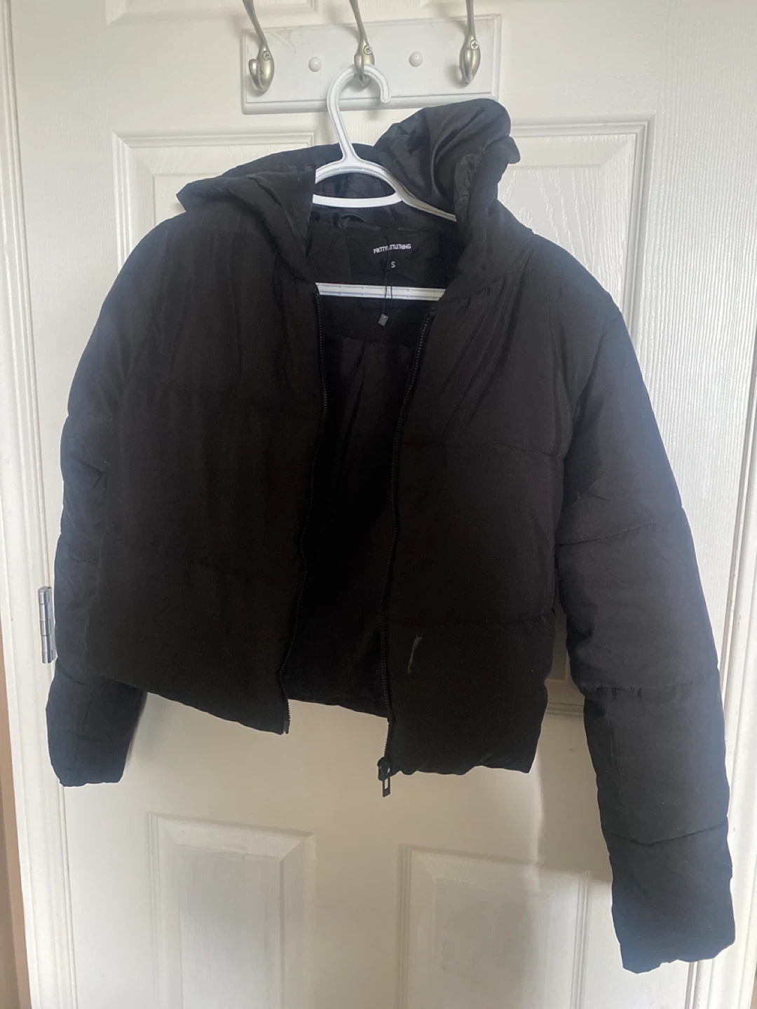 Selling a black puffer jacket from PrettyLittleThing in size small! It's in great condition and ready for a new owner.