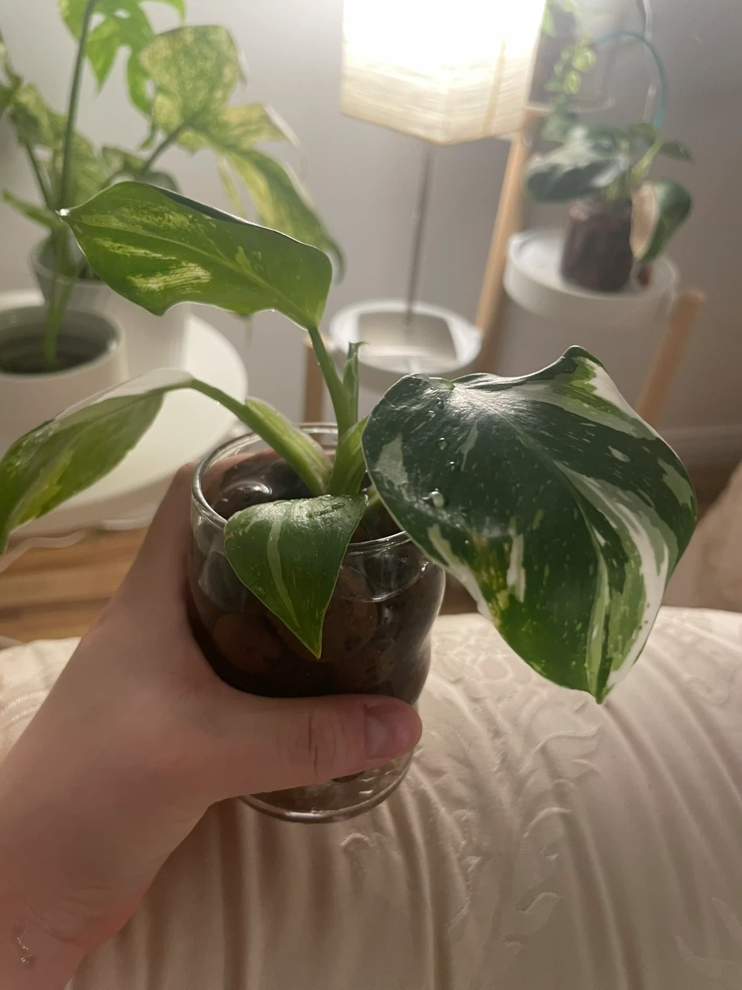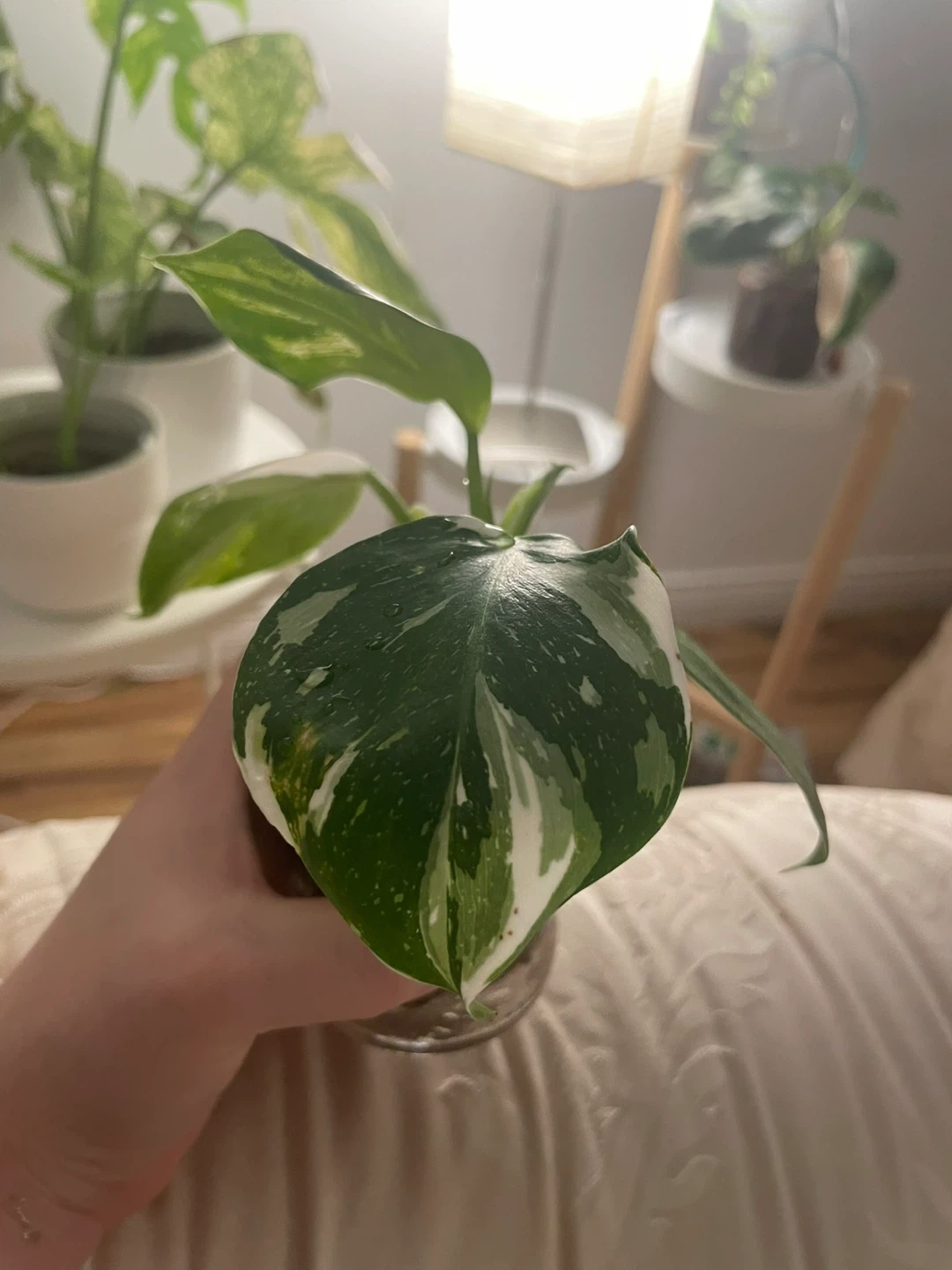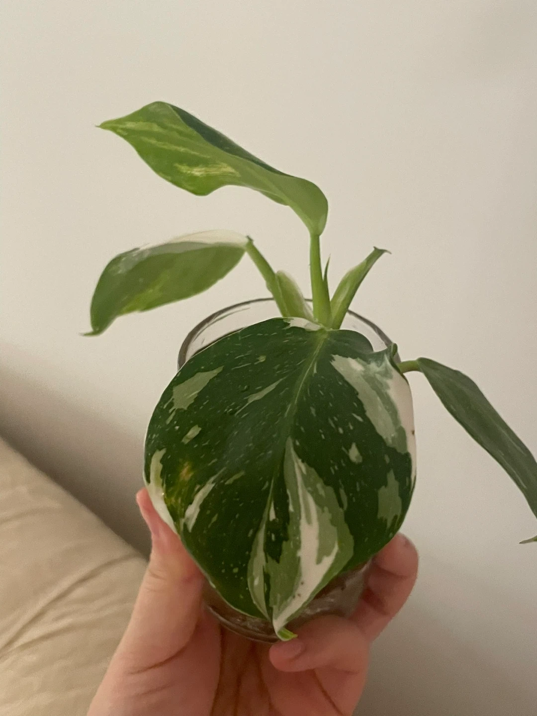 Stable cutting with new leaf unfurling. Healthy roots established. Pest-free. Currently rooting in perlite. Beginner friendly.