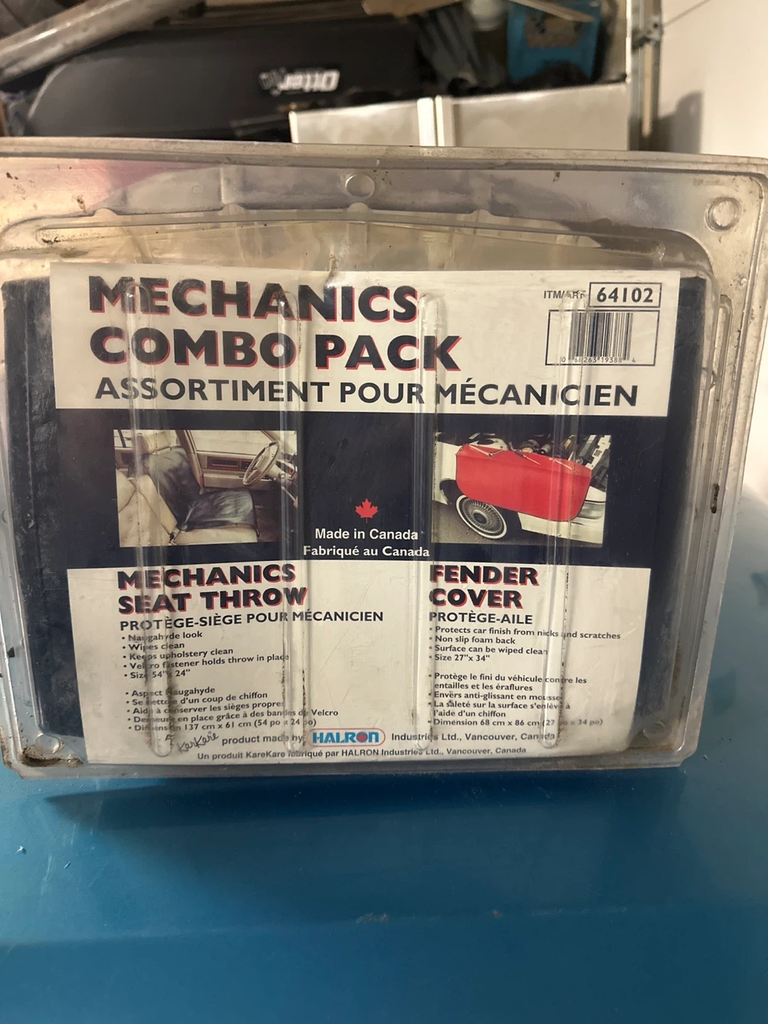 Selling a Mechanics Combo Pack, which includes a seat throw and fender cover.