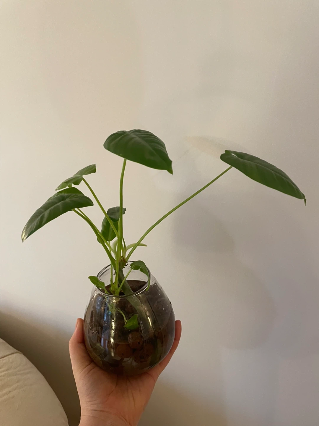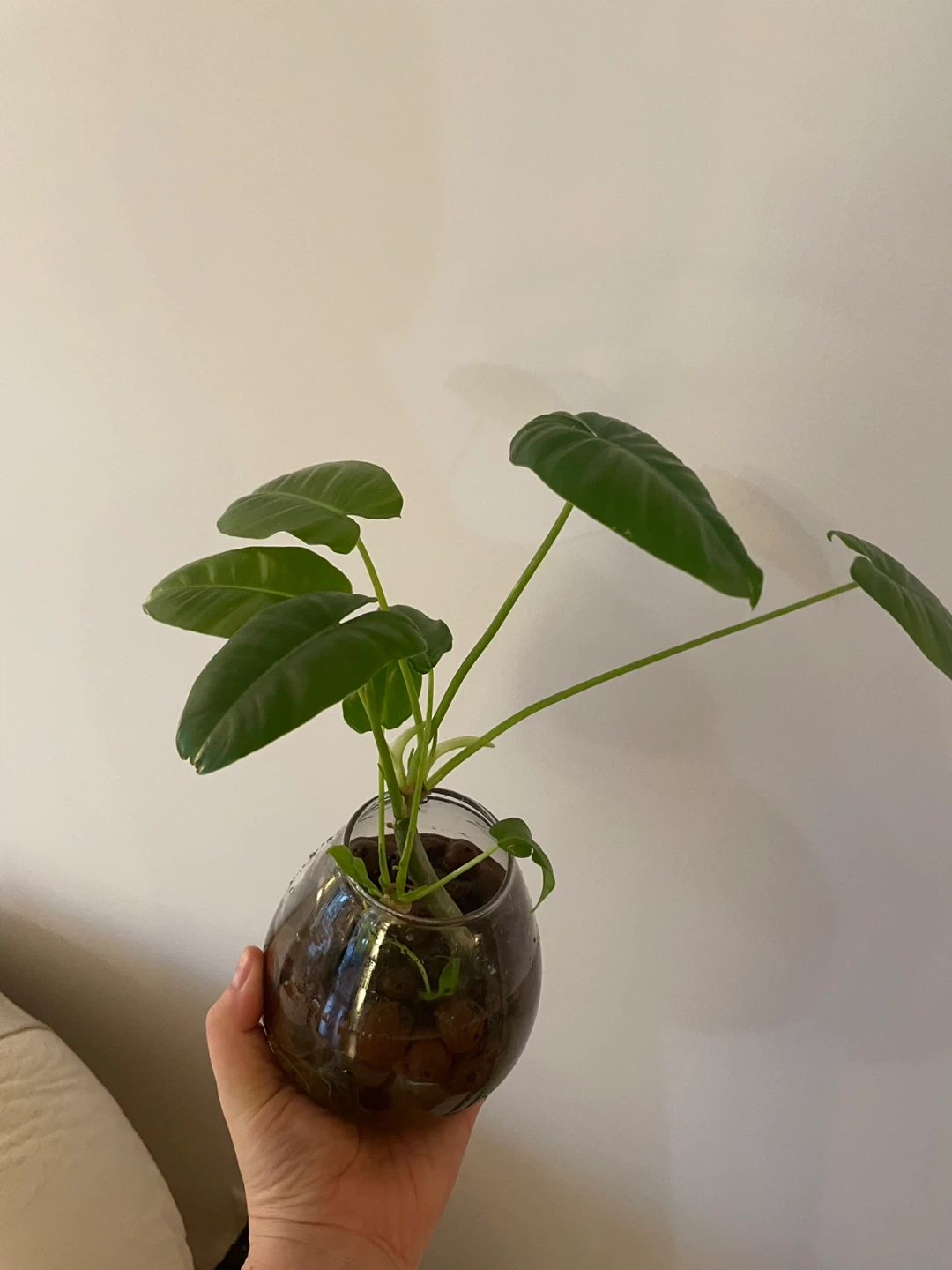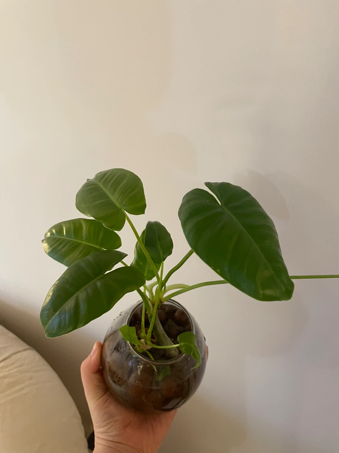 Selling a healthy Burle Marx Philodendron planted in a glass bowl. It's a beautiful and easy-to-care-for houseplant that will add a touch of greenery to your space!