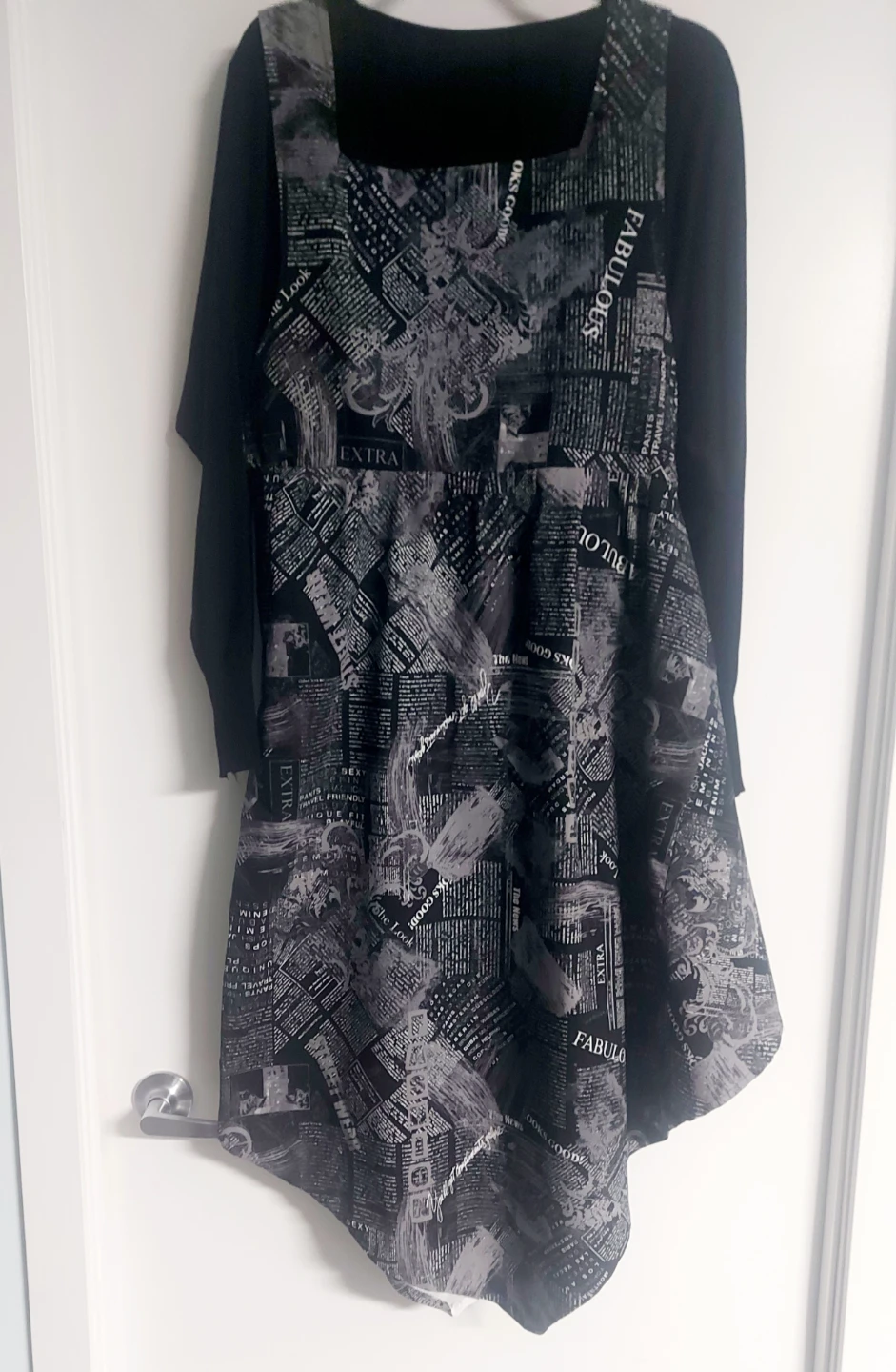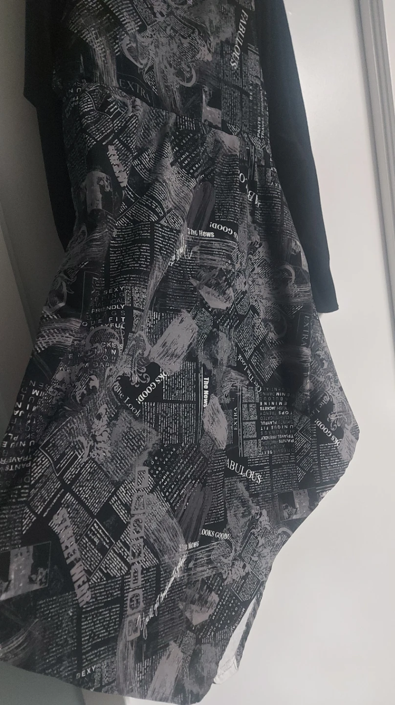 Cute dress with a newspaper print pattern! It's in great condition and ready for a new owner. The unique design is sure to make a statement!