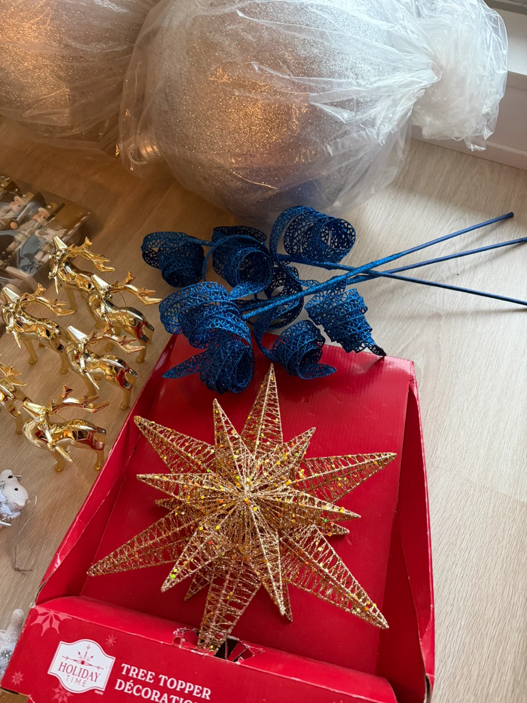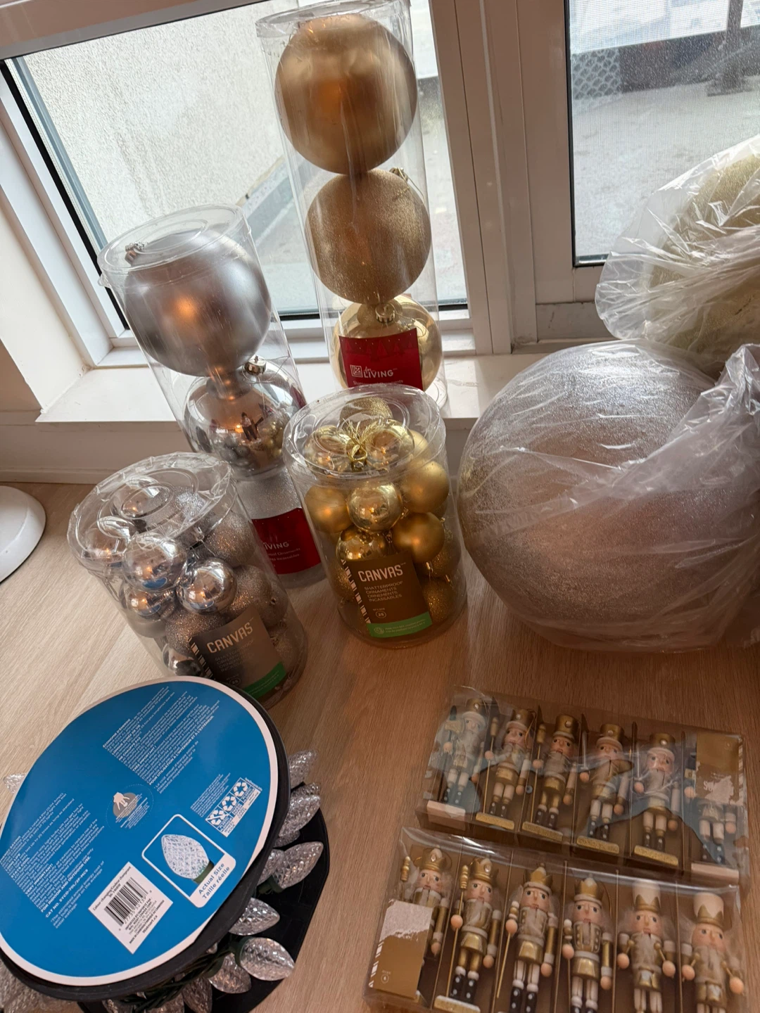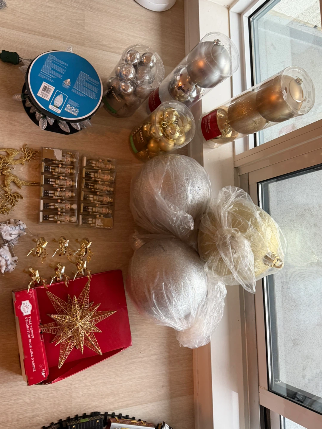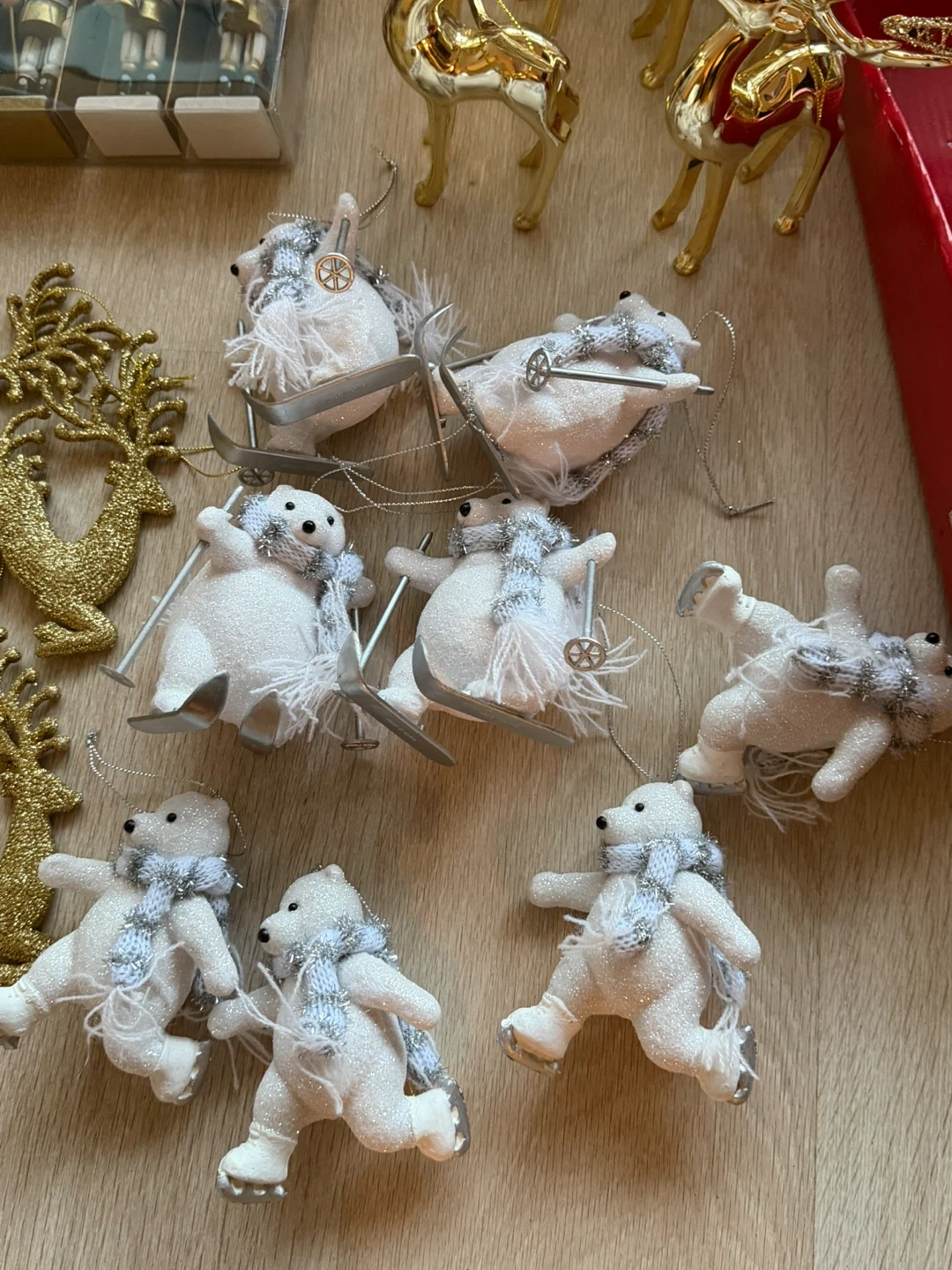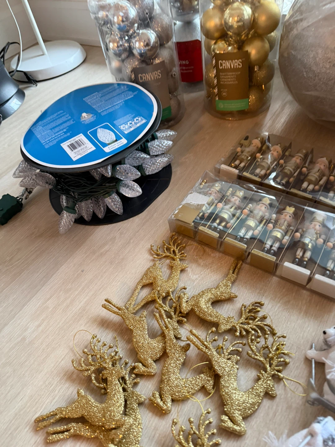 Price firm ****Selling a collection of Christmas ornaments and a tree topper! There are gold and silver ornaments, reindeer, nutcrackers, and cute polar bear ornaments. Also included is a gold star tree topper. Get ready to decorate!