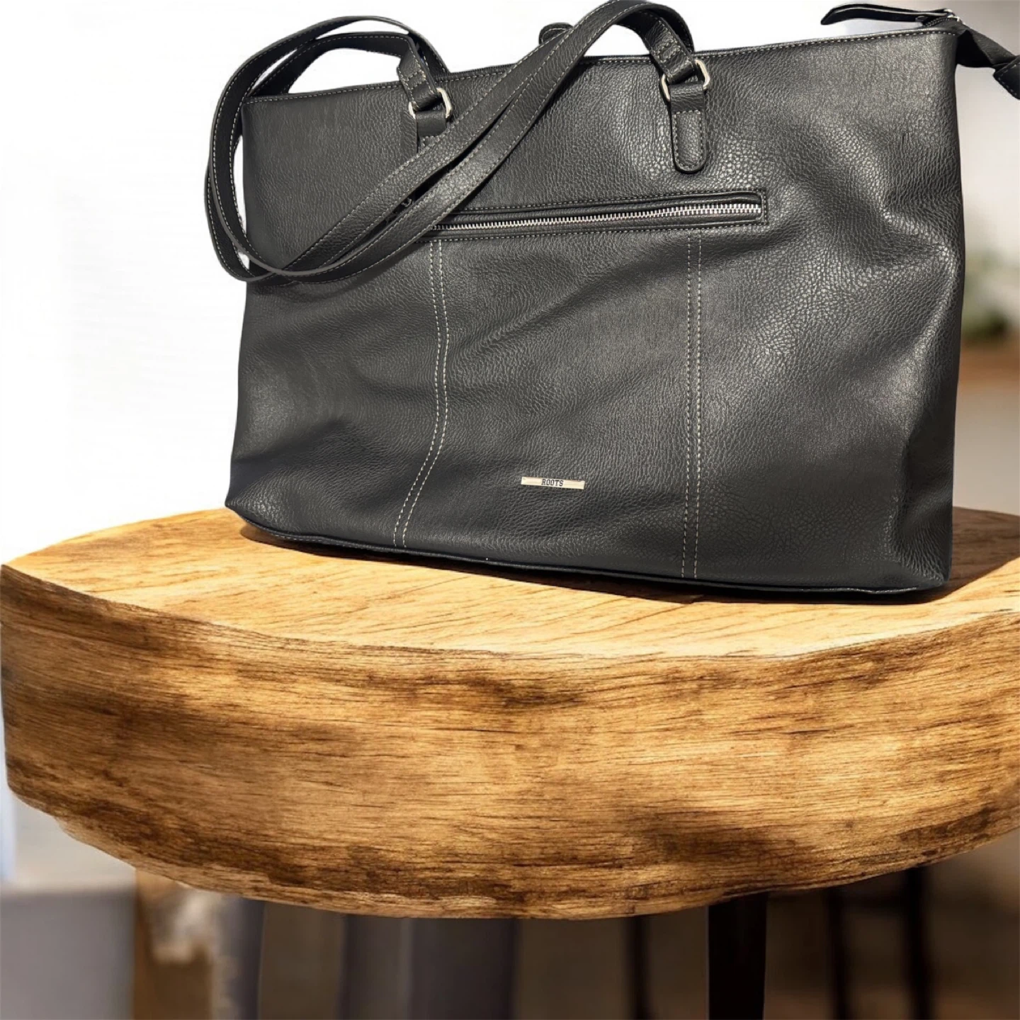 Roots Black Faux Leather Tote Bag
