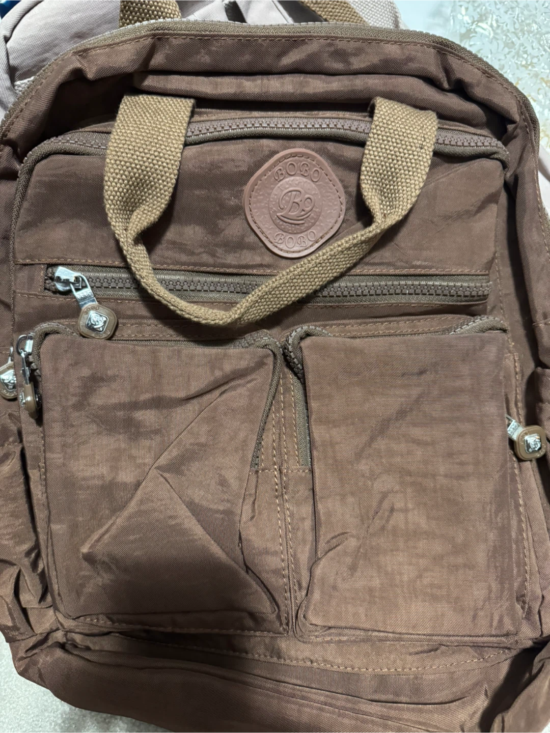 Selling a gently used BOBO BORO backpack in brown. It has a few pockets and compartments, perfect for carrying your essentials around town! Can fit 14 inch laptop. Elegant rustic look .
