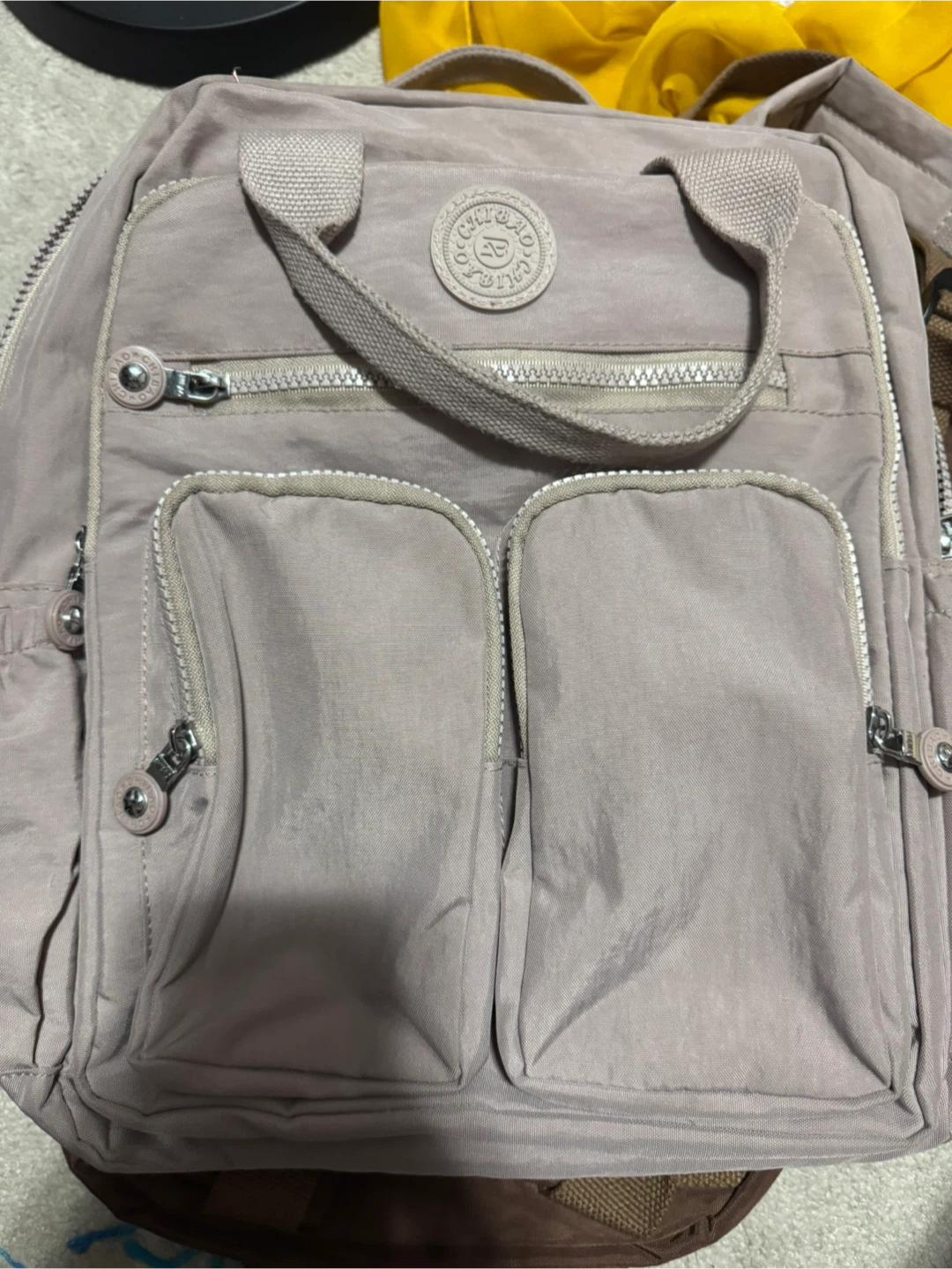 Here's a ChiBAo backpack in great condition! It's a stylish and functional bag, perfect for everyday use or travel. The bag features multiple compartments and zippers for easy organization. Fits 14 inch laptop