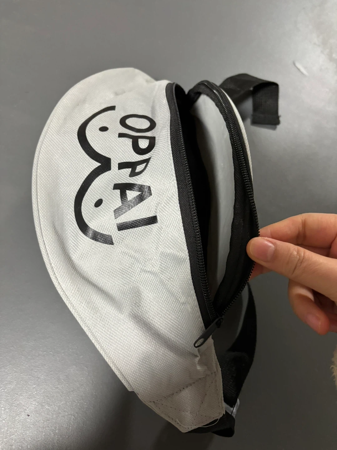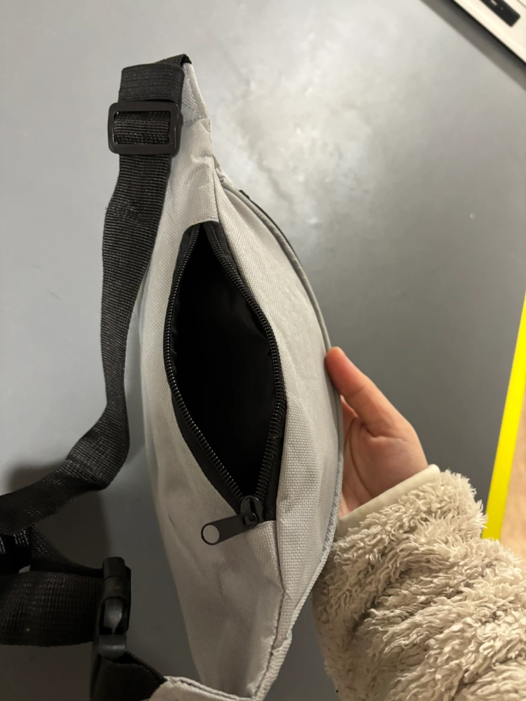 Here's a cute white fanny pack with a fun design on the front! It's in great shape and ready for a new owner. Perfect for adding a bit of humour to your outfit while keeping your essentials close by