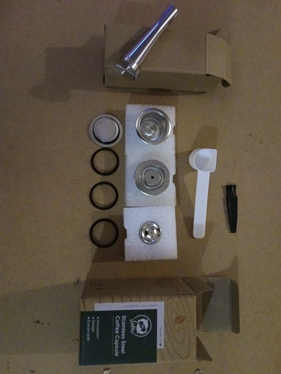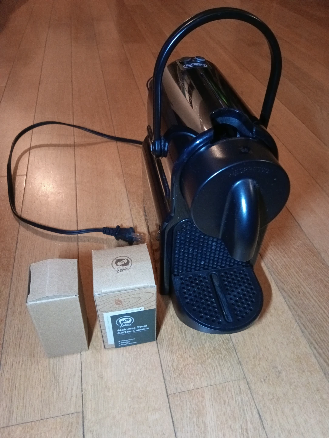 I'm selling a DeLonghi Nespresso Essenza Mini coffee machine in black. It's in great condition and comes with a box of 3 reusable stainless steel coffee capsules, a coffee presser and a spoon. Perfect for a quick and easy espresso at home!