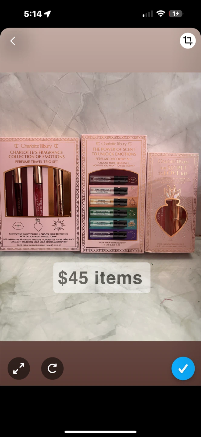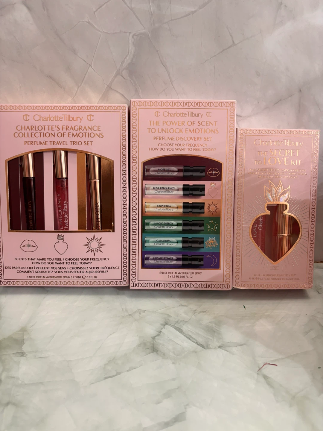 Selling a Charlotte Tilbury fragrance collection of emotions perfume travel trio set! Includes three scents to match your mood. The set comes in its original box, making it perfect for gifting or treating yourself price for each
