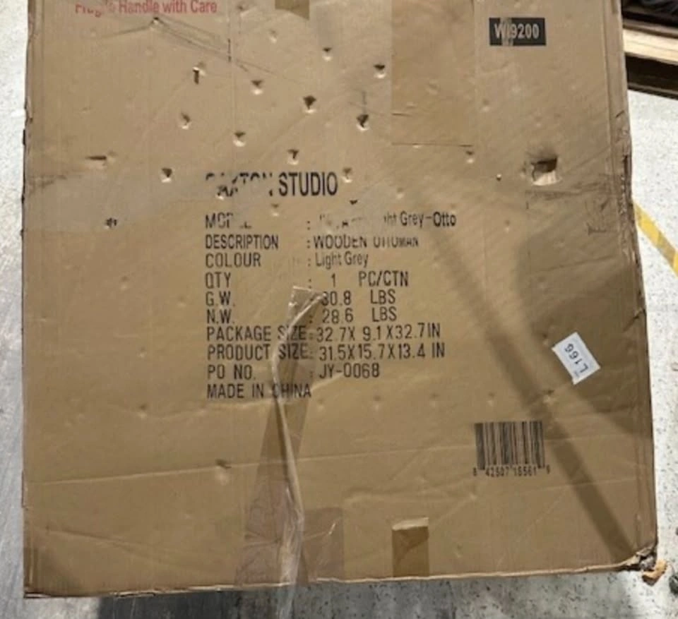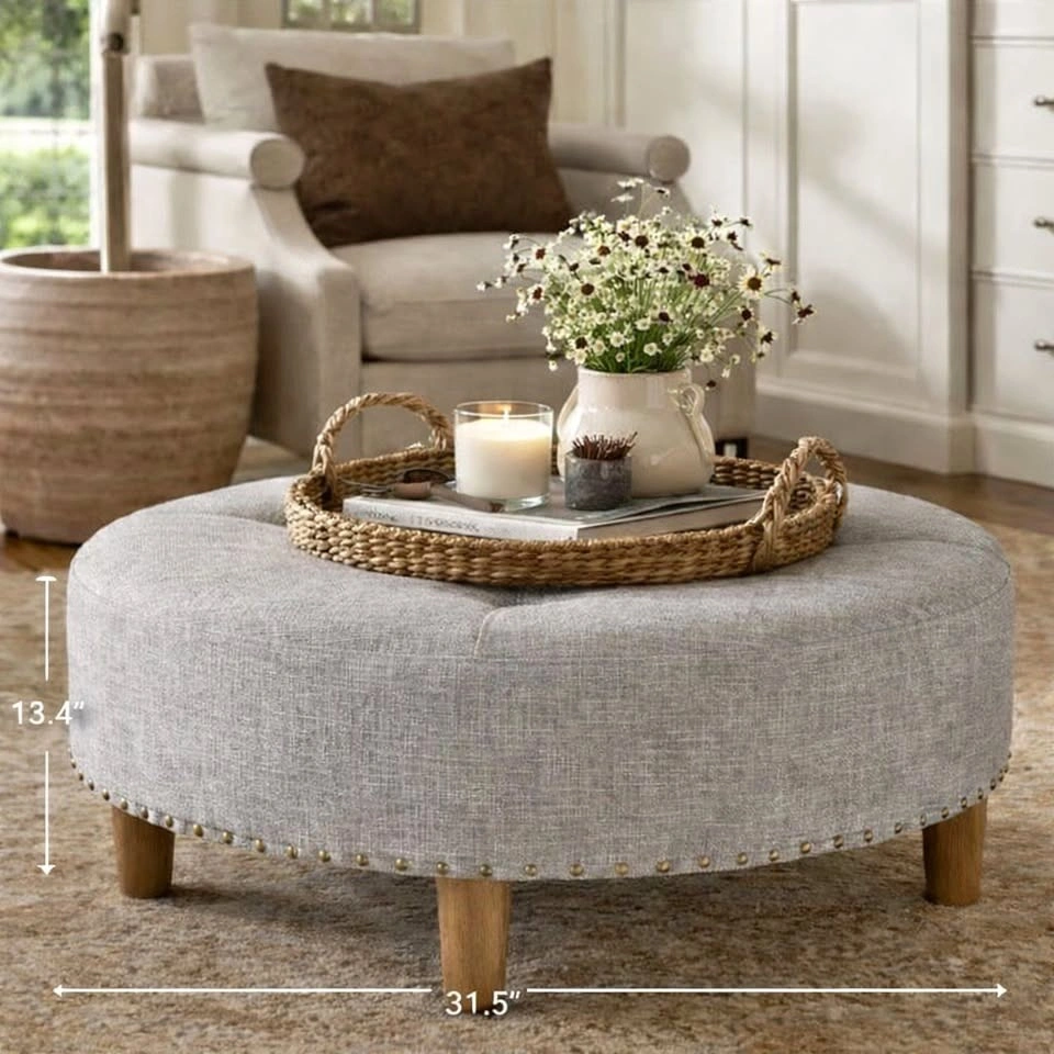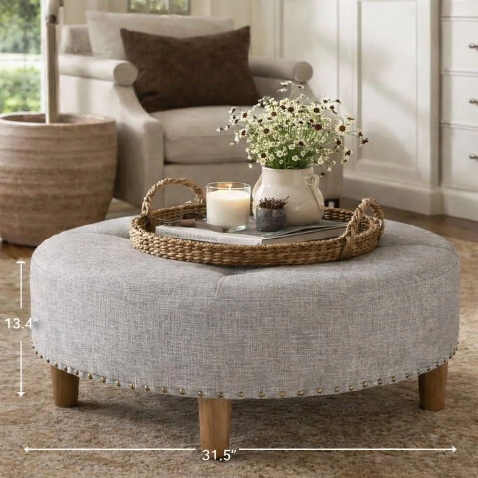 Beautiful large tufted coffee table ottoman with solid wood legs. It is brand new, in box.
