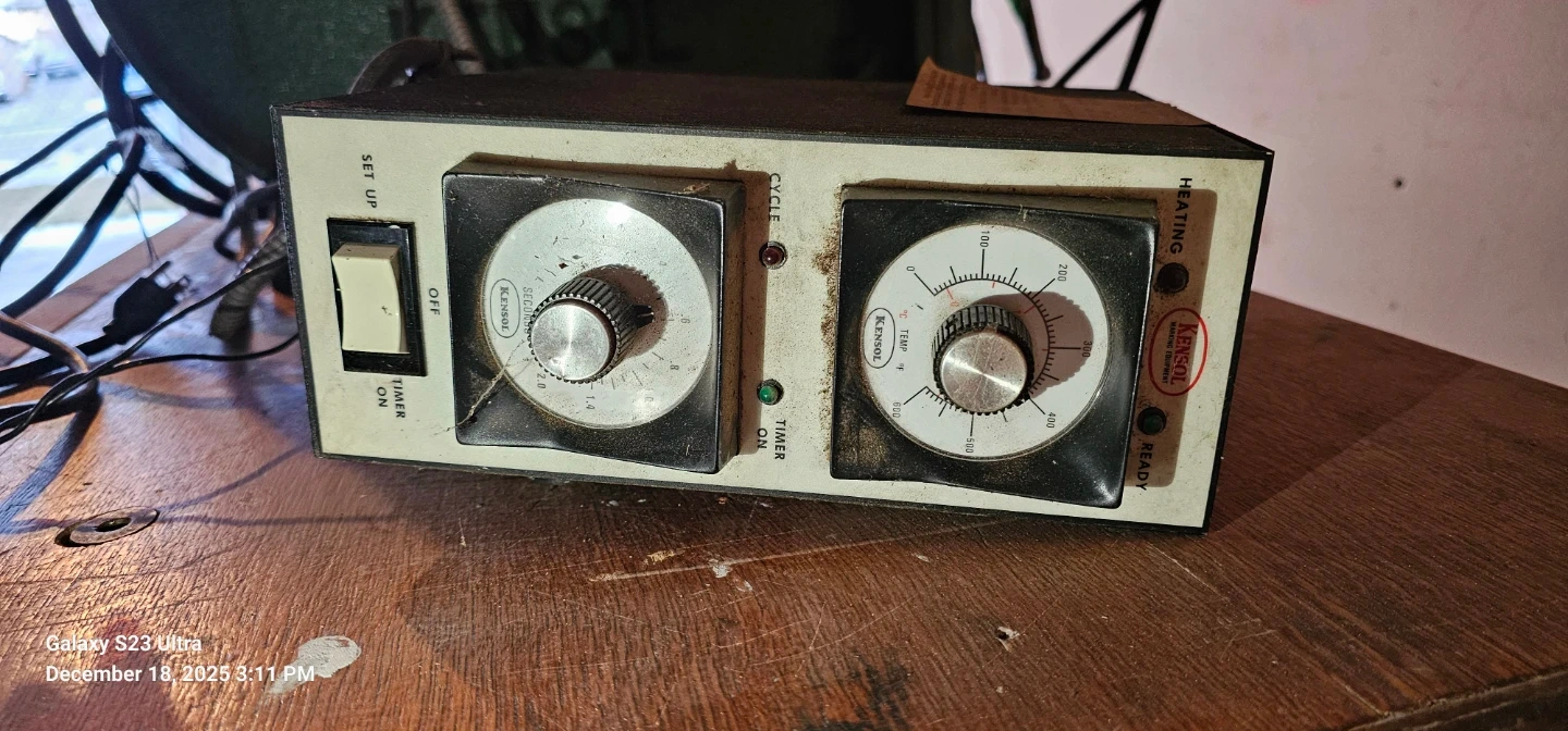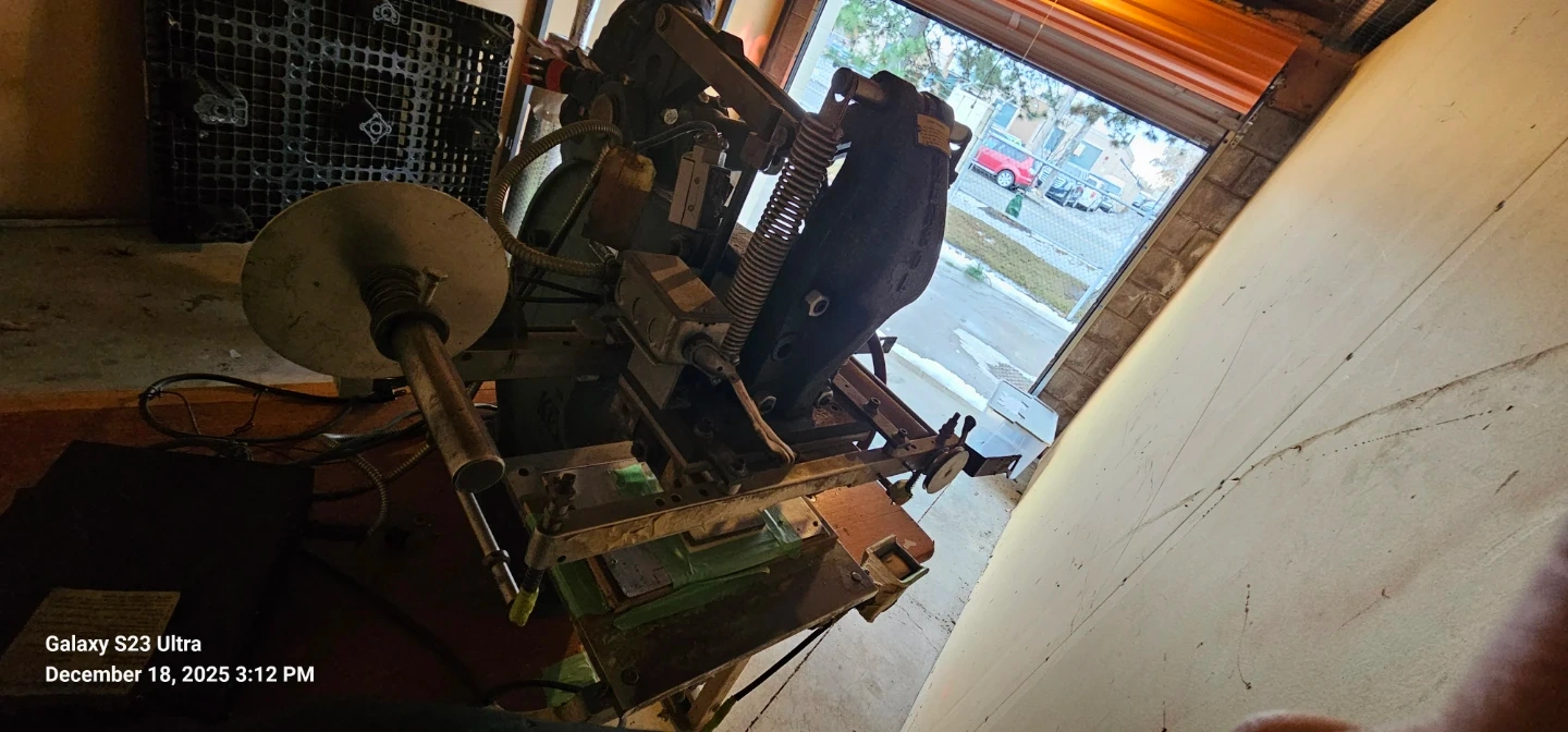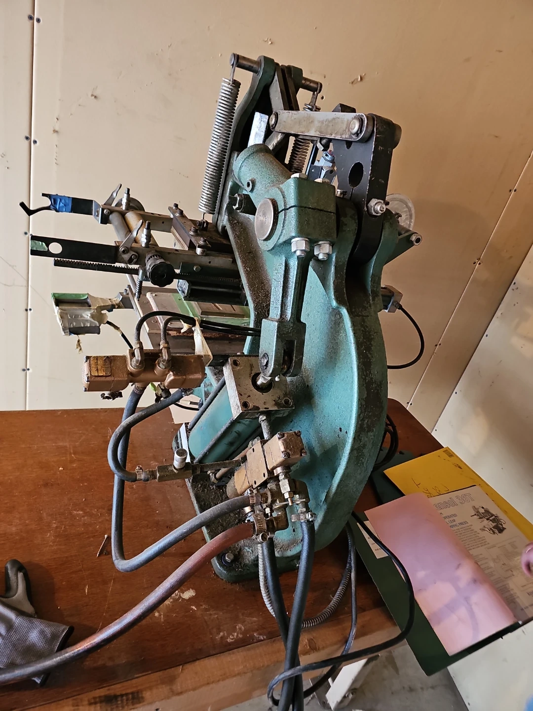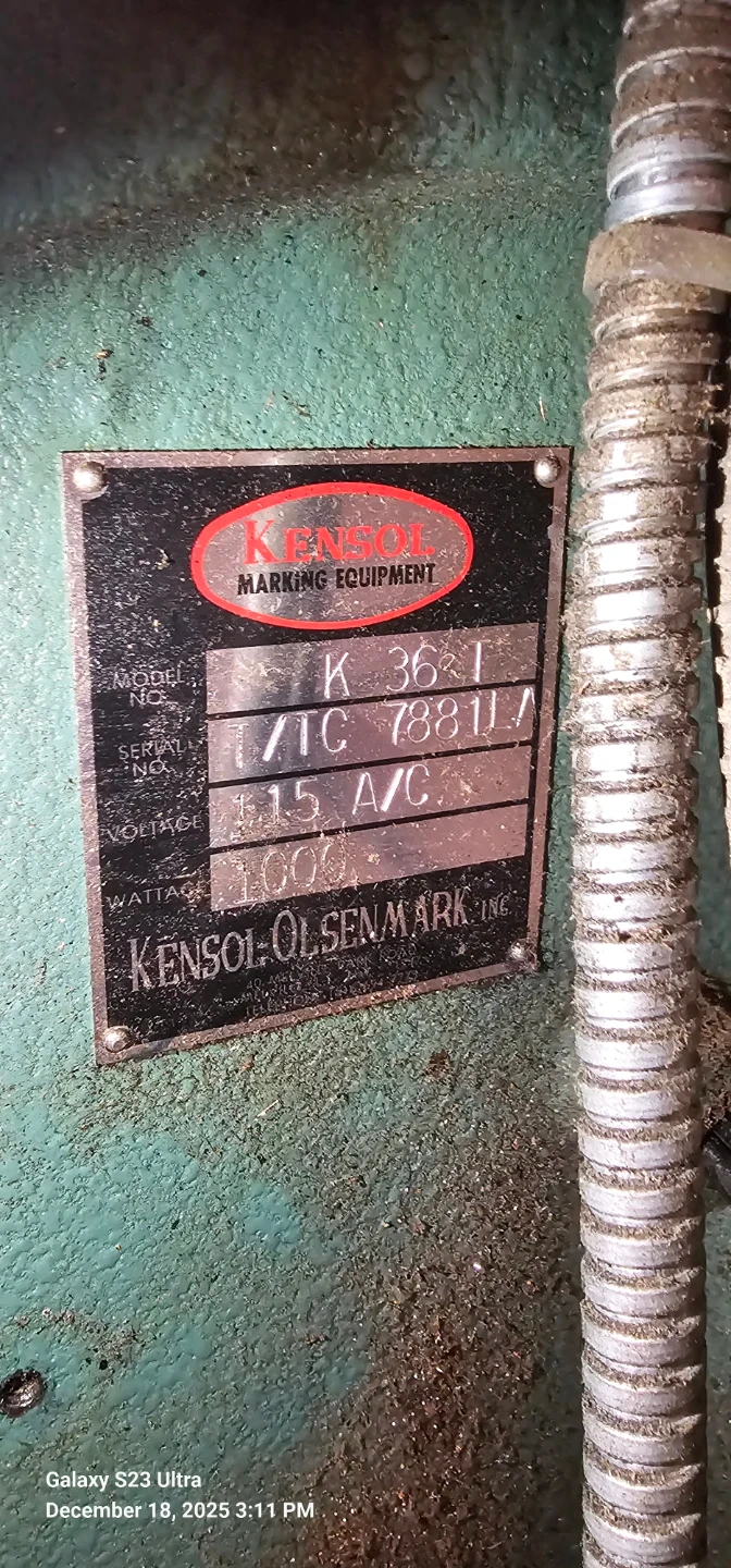 Selling a Kensol 36T air-operated roll leaf stamping press. This medium range machine is designed to stamp roll items up to 2 inch(es) high.