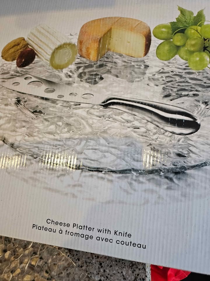 Int Forum Design Cheese Platter with knife, 14"- glass