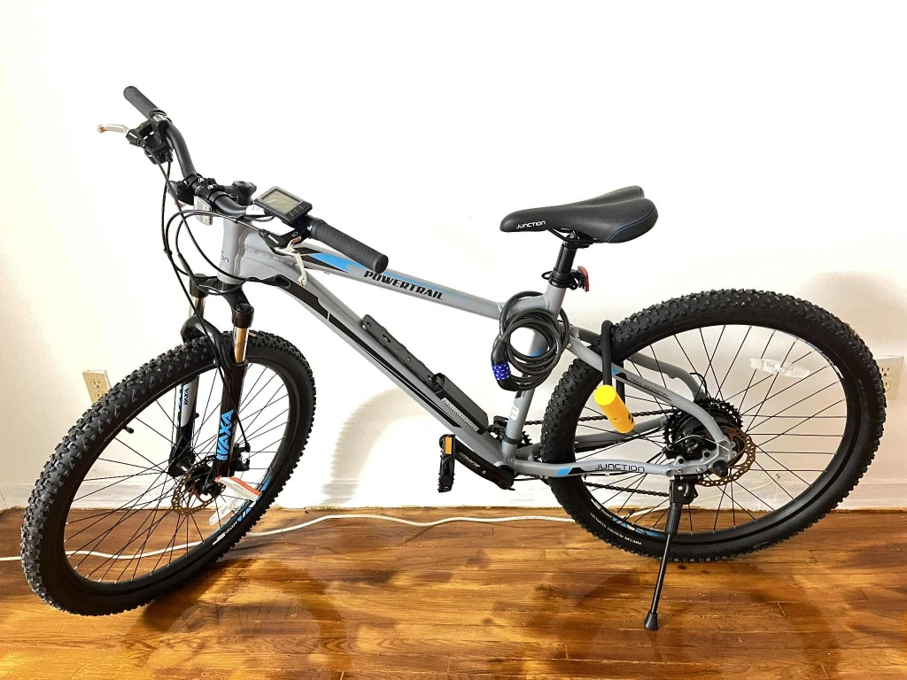 Selling a Junction Powertrail Hardtail electric bike in grey! This bike is in great condition and ready for some adventures. It's a 27.5-inch model, perfect for hitting the trails or cruising around town. Originally, this bike was bought for $2,199.99 + taxes in Canadian Tire