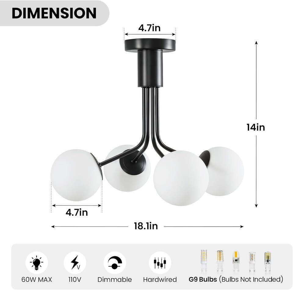 - Semi flush mount ceiling fixture