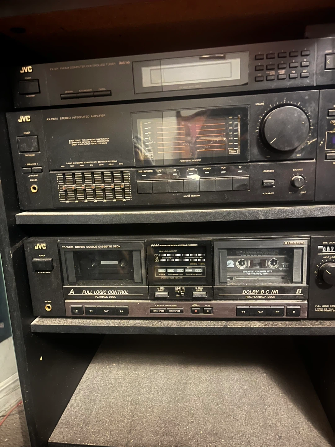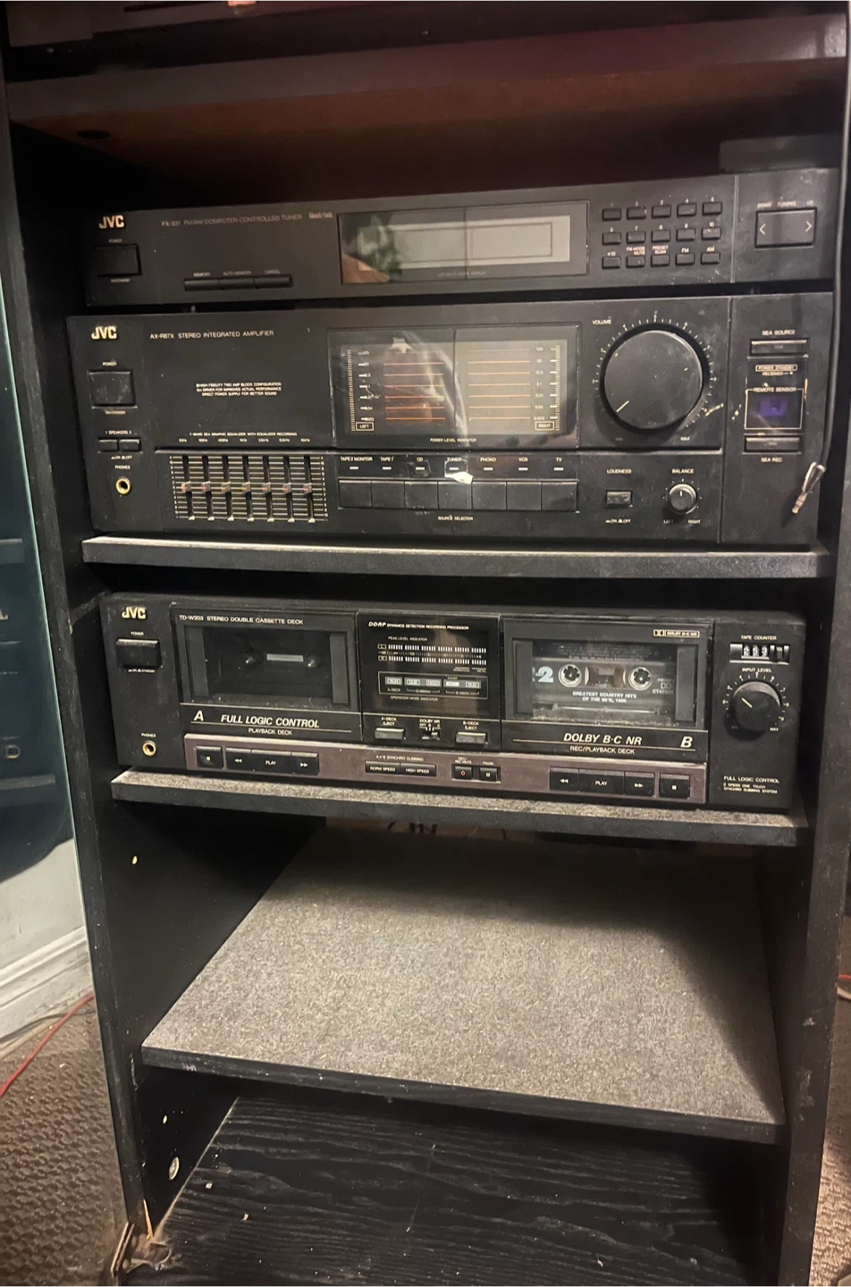 Selling a set of JVC stereo components. Includes the FX-331 FM/AM computer controlled tuner, AX-R61X stereo integrated amplifier, TD-W303 stereo double cassette deck, and XL-R202 compact disc automatic changer. Great for anyone looking to build a vintage audio setup! Includes
