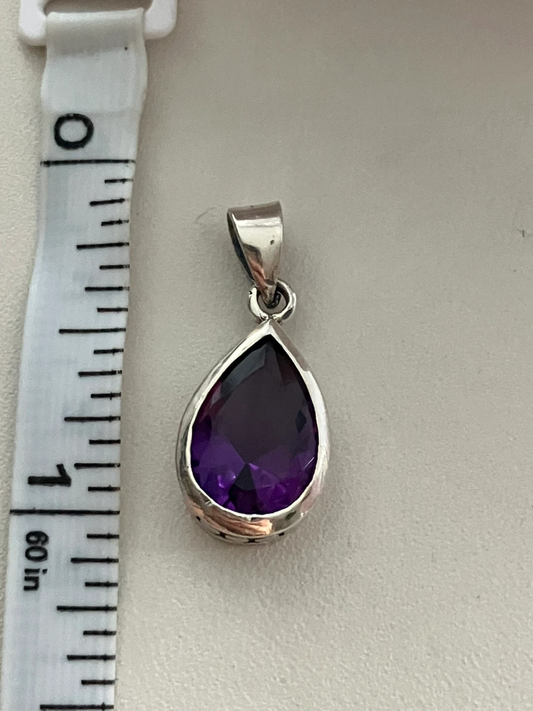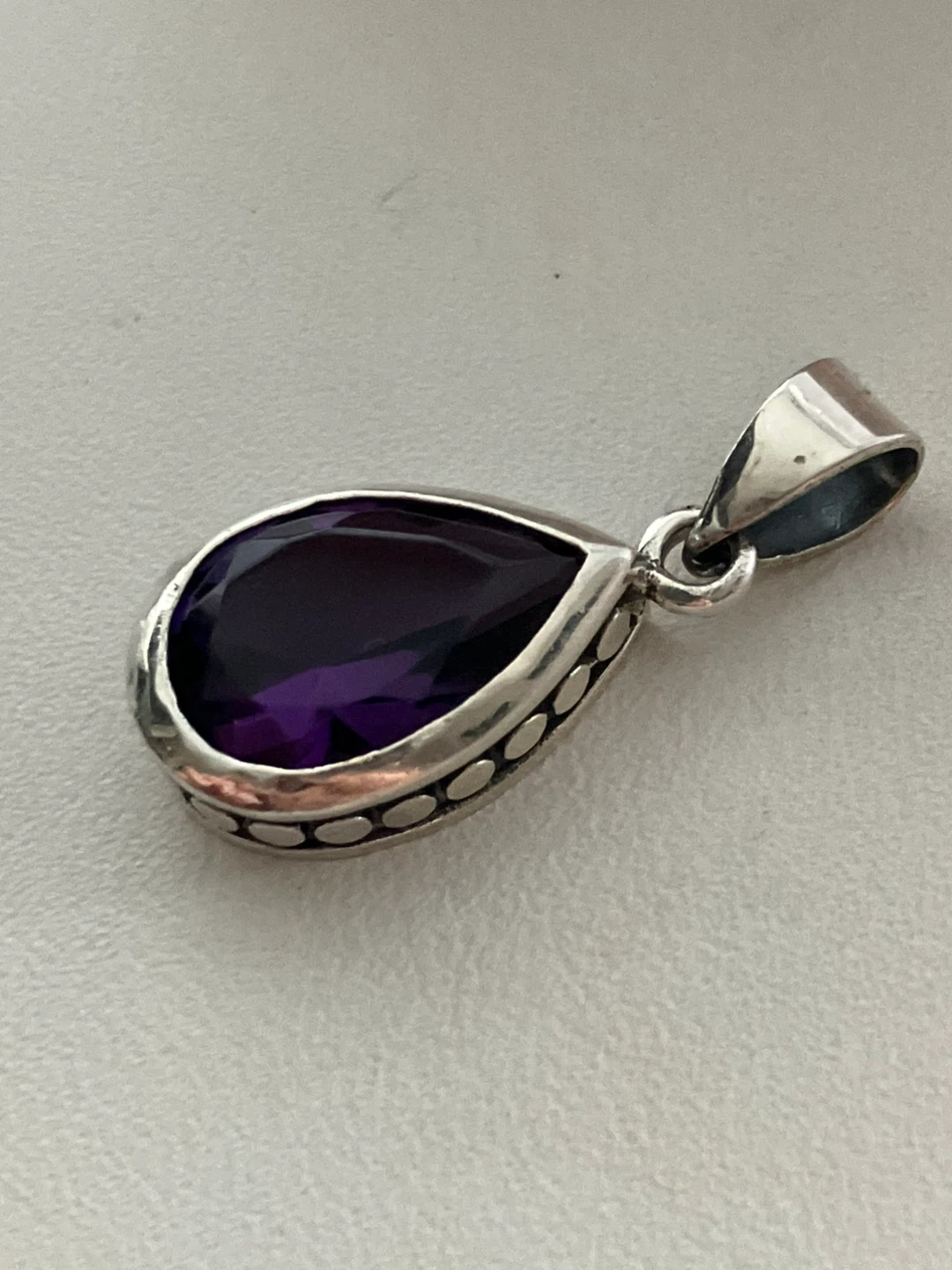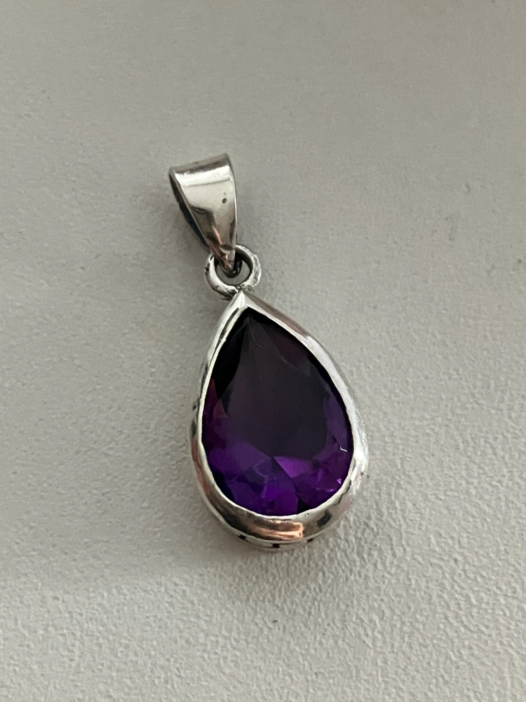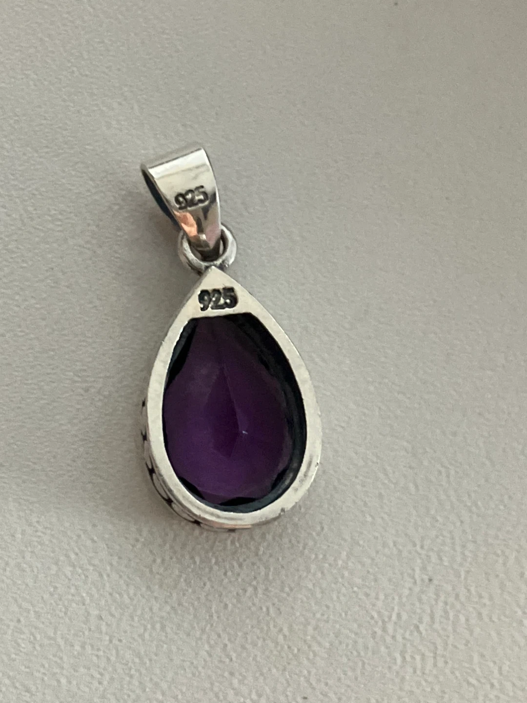 Selling a lovely amethyst pendant set in 925 silver. It's in great condition and comes with a box. The pendant is about 1 inch in length