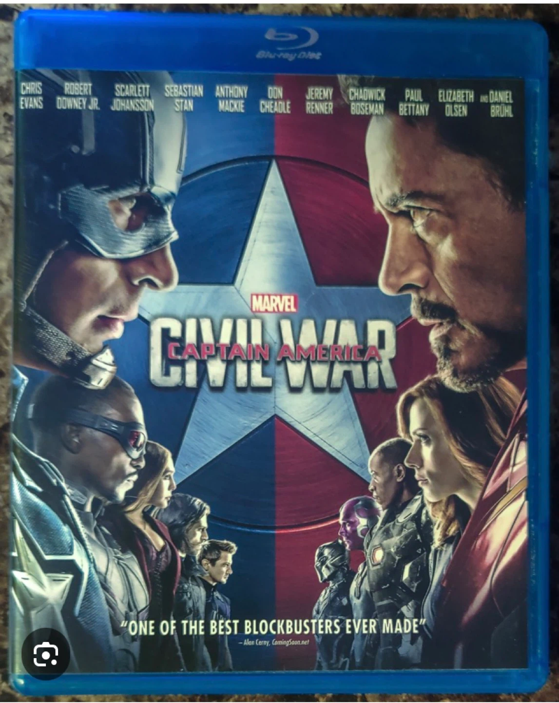 Selling the Blu-ray of Captain America: Civil War. It's in great condition and ready for a new home theatre setup! This movie features a star-studded cast including Chris Evans, Robert Downey Jr, and Scarlett Johansson. Enjoy this action-packed adventure!