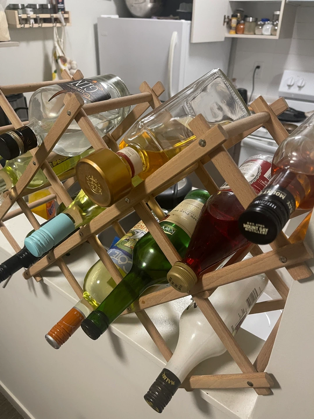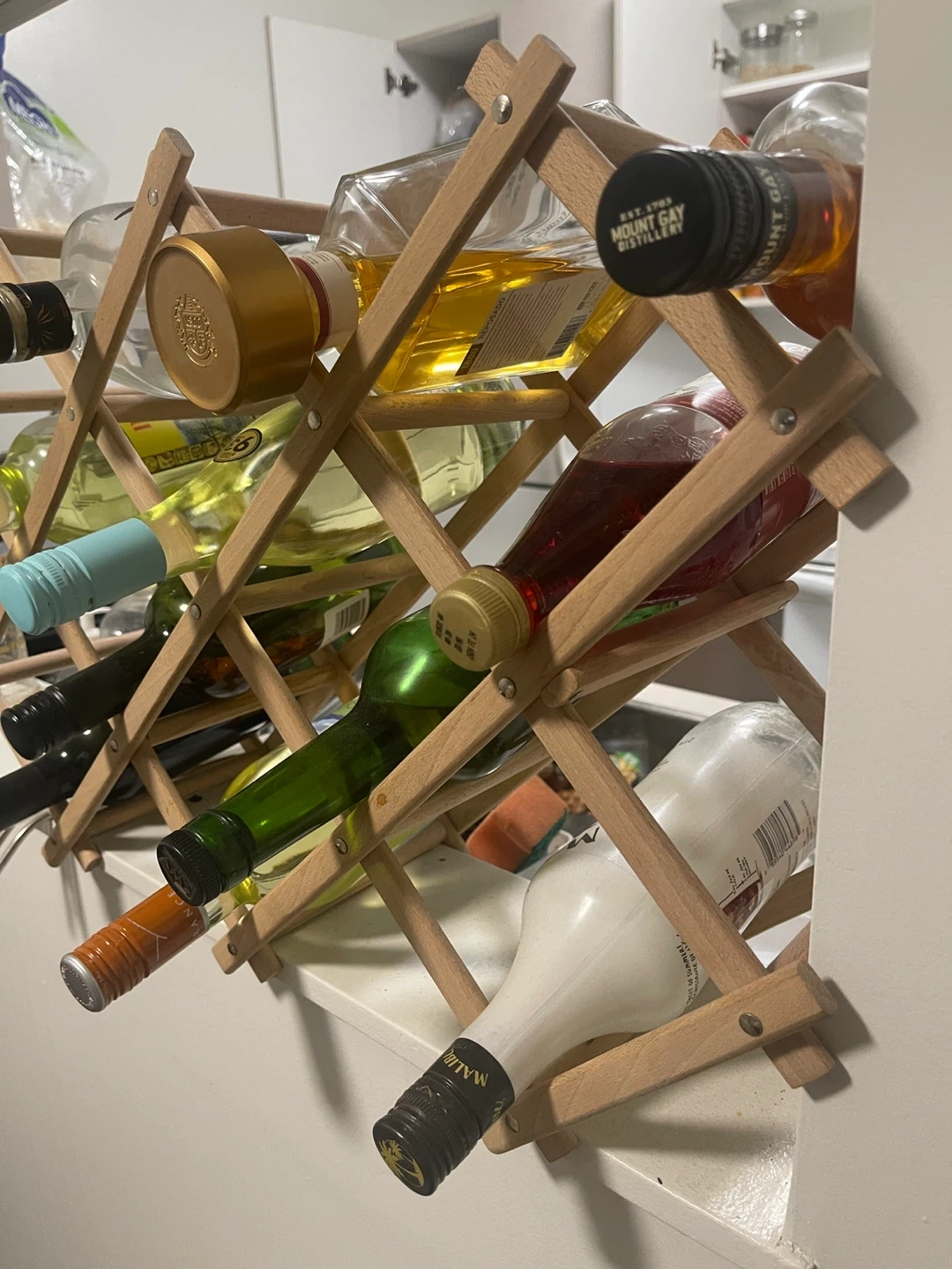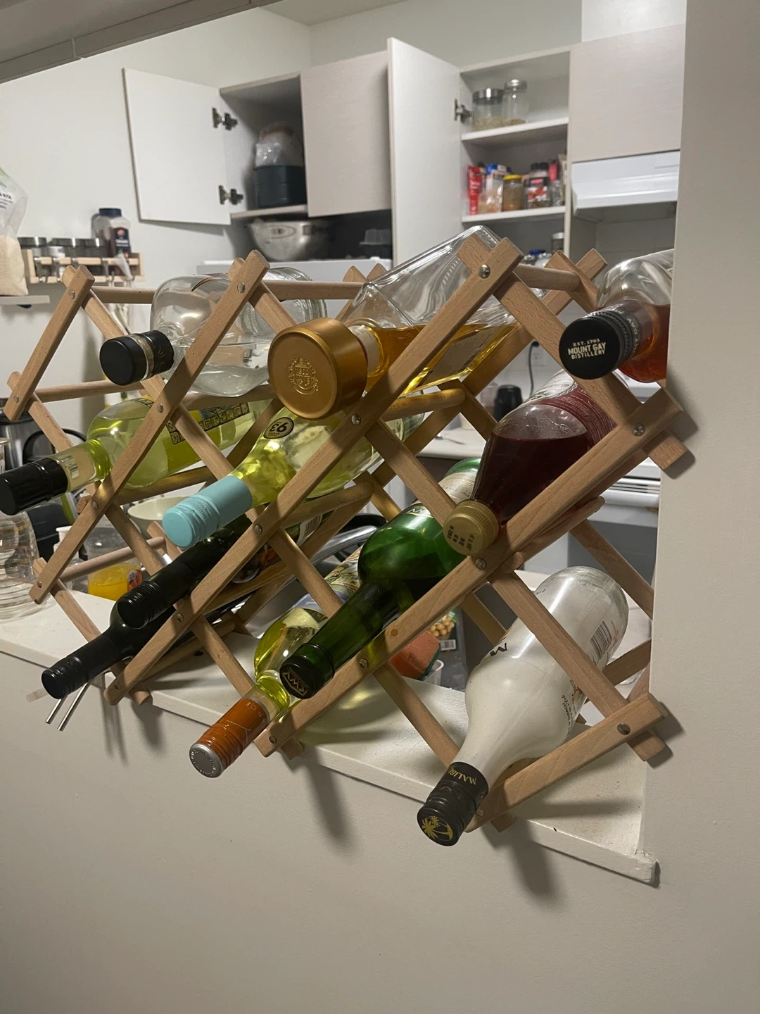 Selling a wooden wine rack! It's in great shape and perfect for storing your favourite bottles of wine. A great addition to any kitchen or dining area! As good as new. No issues.
