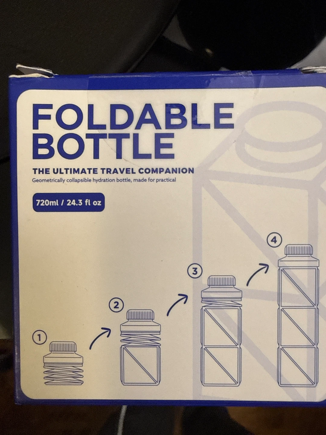 Selling a foldable bottle, the ultimate travel companion! It's a geometrically collapsible hydration bottle, perfect for practical use. Holds 720ml / 24.3 fl oz