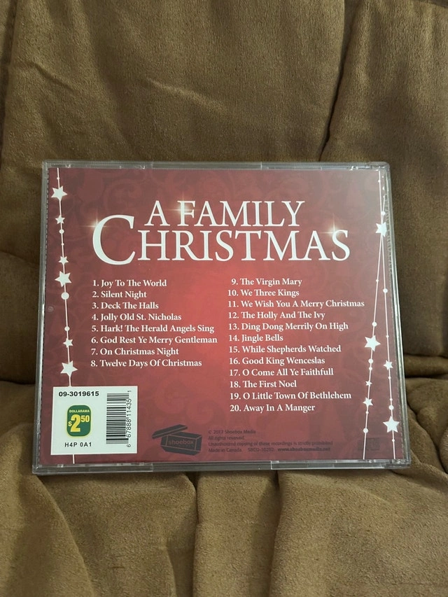 Get into the festive spirit with this 'A Family Christmas' CD, perfect for holiday gatherings and enjoying classic Christmas tunes. The CD is in used, but good condition, ready to fill your home with cheerful melodies. Tracklist: 1. Joy To The World 2. Silent Night 3. Deck The Halls 4. Jolly Old St. Nicholas 5. Hark! The Herald Angels Sing 6. God Rest Ye Merry Gentlemen 7. On Christmas Night 8. Twelve Days Of Christmas 9. The Virgin Mary 10. We Three Kings 11. We Wish You A Merry Christmas 12. The Holly and The Ivy 13. Ding Dong Merrily On High 14. Jingle Bells 15. While Shepherds Watched 16. Good King Wenceslas 17. O Come All Ye Faithful 18. The First Noel 19. O Little Town Of Bethlehem 20. Away In A Manger Dust off your dancing shoes and warm up your vocal cords, because this CD is ready to bring some holiday cheer! If the ad is up, the CD is available – no need to ask, just get ready to make some memories.