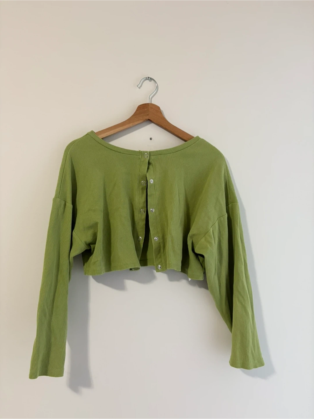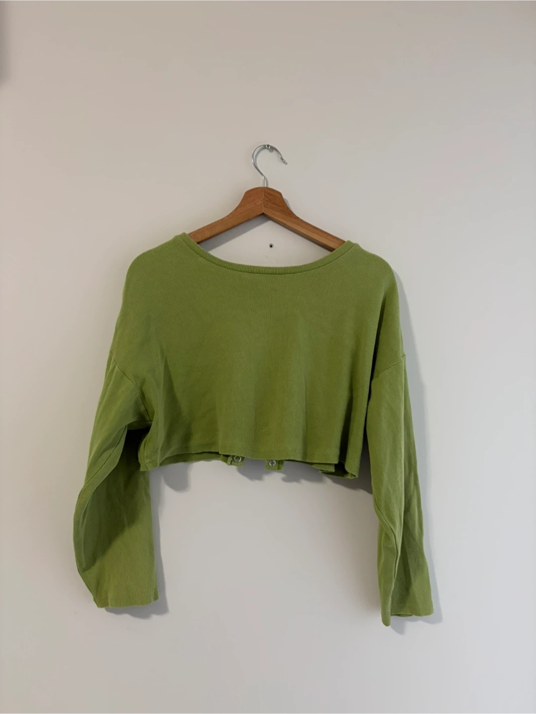 Selling a cute WEGO crop top in a lovely green colour! It's a size F and made of 95% cotton and 5% polyurethane. Perfect for layering or wearing on its own!