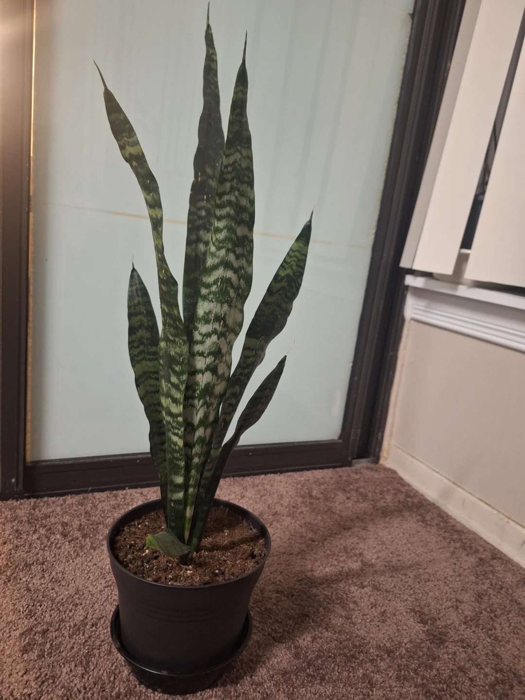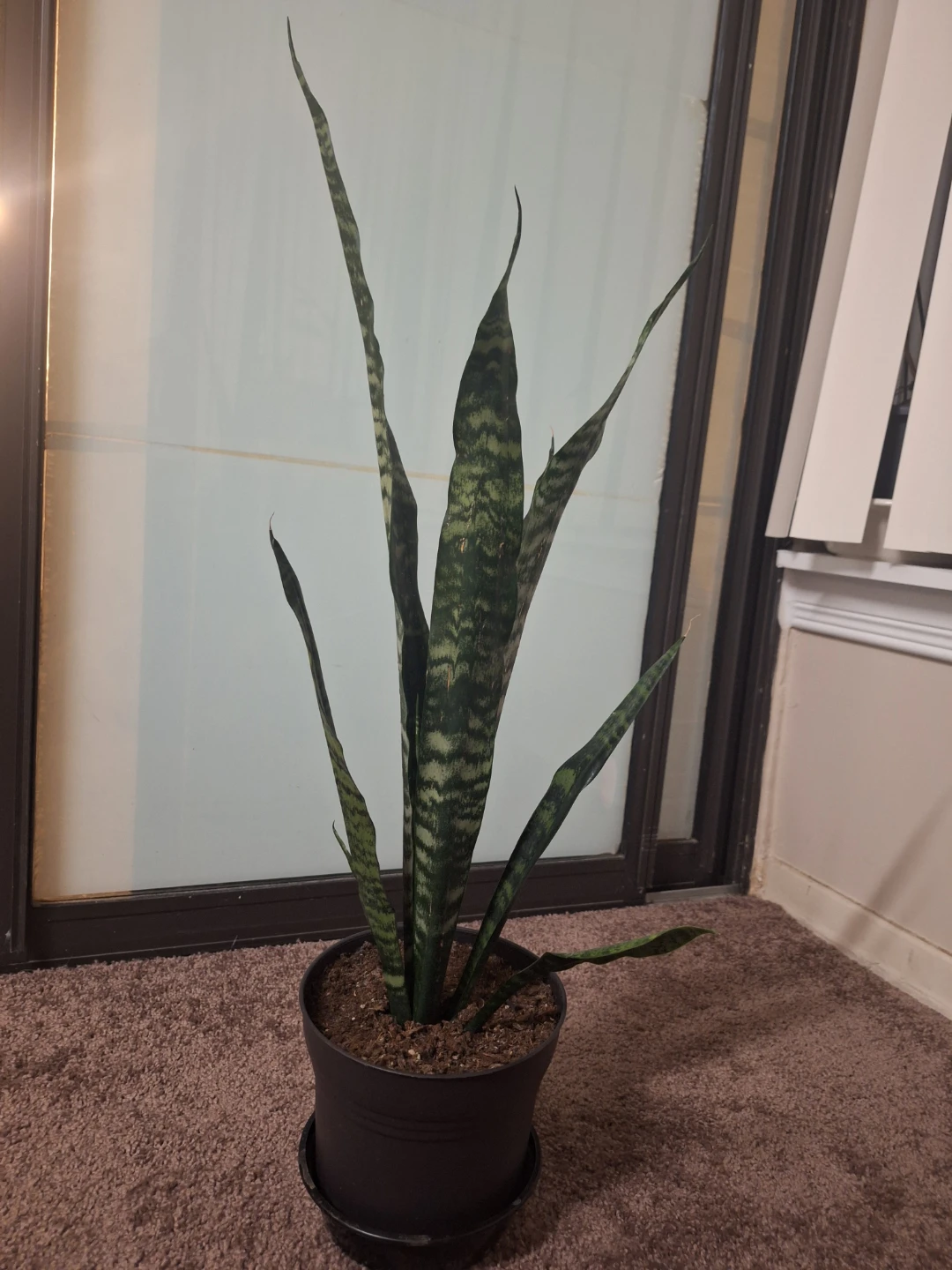 Selling a healthy snake plant in a black pot. It's a great indoor plant and easy to care for. Perfect for adding some greenery to your space! Pick up only