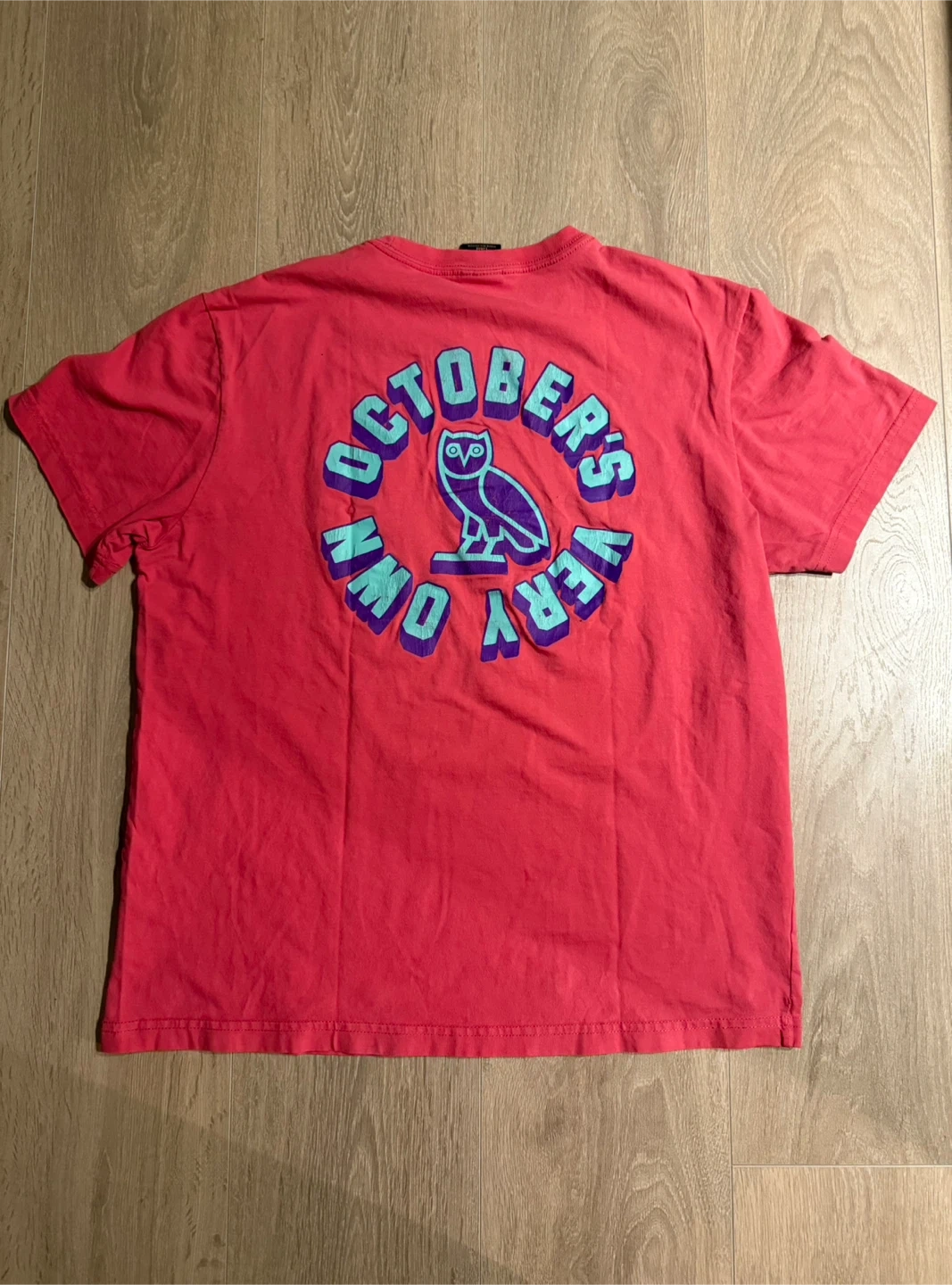 Selling an Original OVO (October's Very Own) t-shirt in size women’s large but would fit a medium mens. The shirt features the OVO owl logo on the back and the OVO initials on the front. It's in great shape and ready for a new owner, its in great condition selling since im a student and need the money.