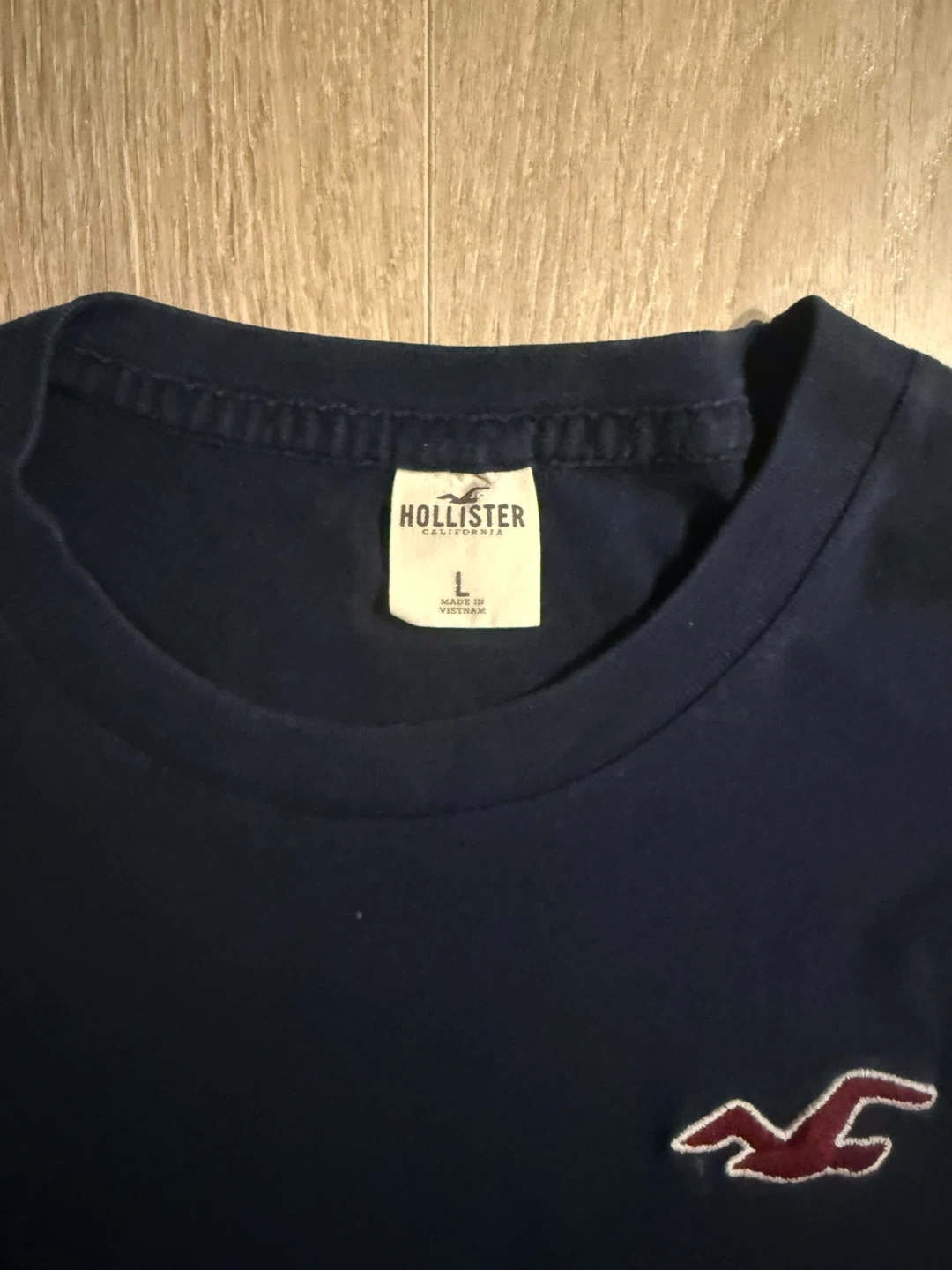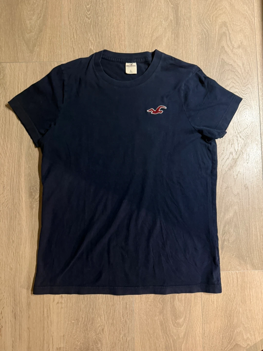 I'm selling a navy blue Hollister t-shirt in womens size large but would fit a mens medium perfectly. It's in great condition and im only selling it since im a student and need the money.