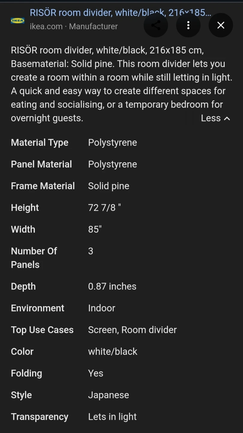 Selling a folding room divider screen with a black frame and white panels. It's in great condition and perfect for adding privacy or dividing a space in your home or office. The geometric design is quite modern!
