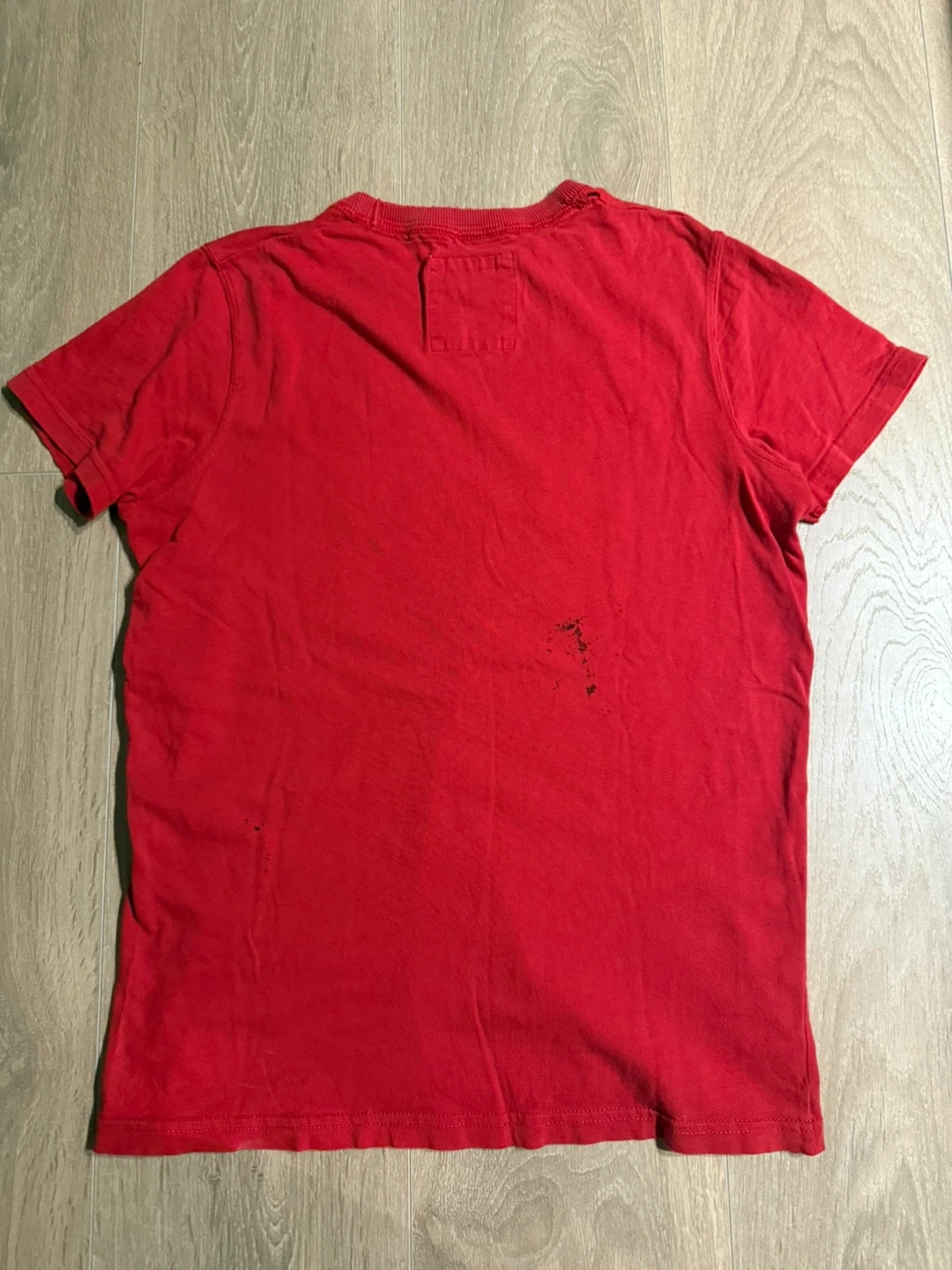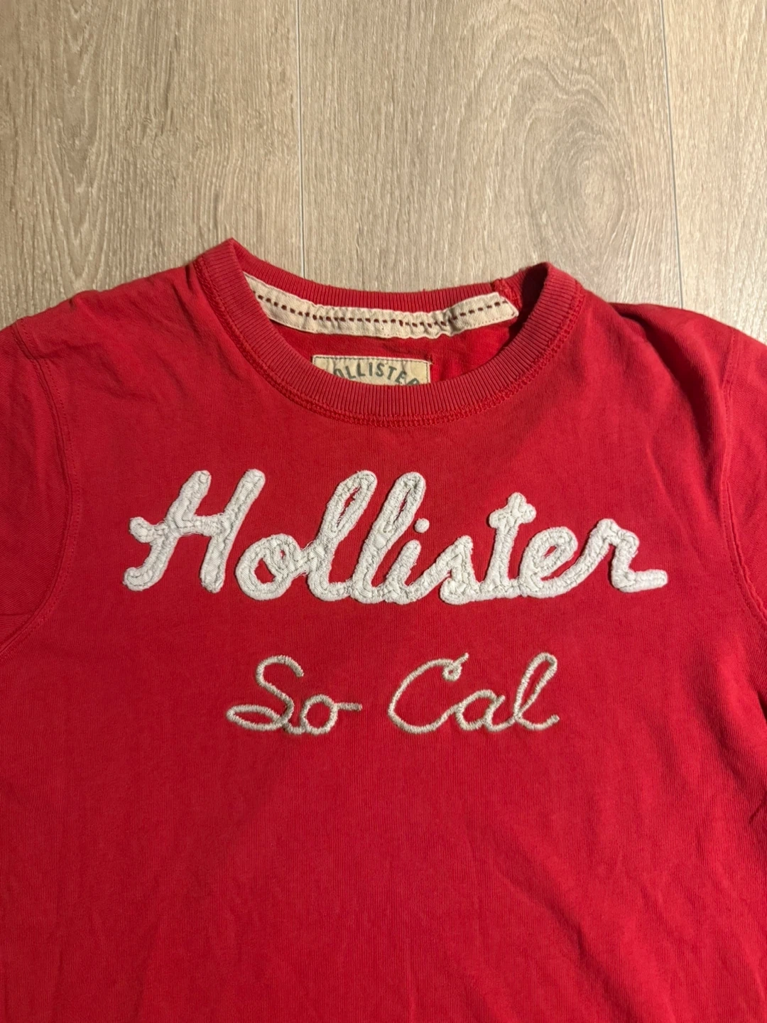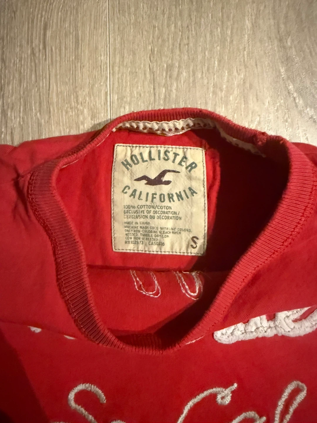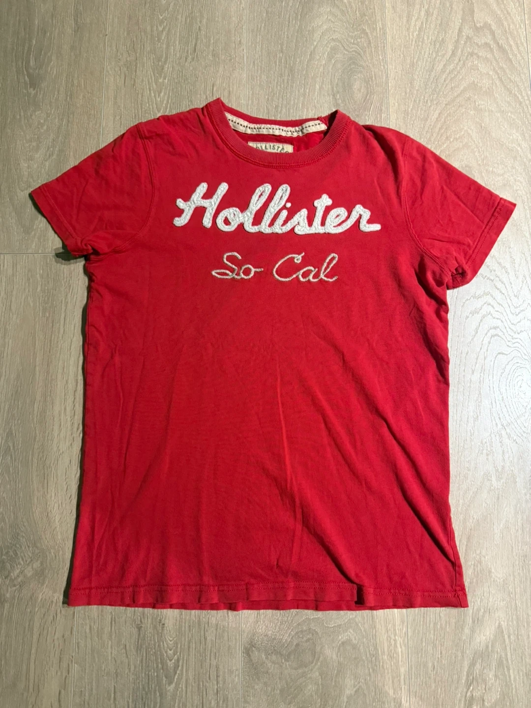 Red Hollister So Cal vintage t-shirt in size small. It's made of 100% cotton. The color is amazing and its in great condition. Normally goes over 35+ since its vintage but keeping the price low only beacuse of the little stain in the back. Its in great condition selling since im a student and need the money urgent.