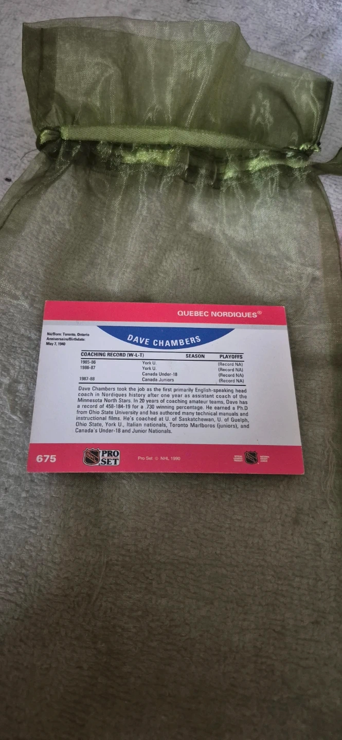 Selling a Dave Chambers Quebec Nordiques Pro Set NHL card. It's in great shape for its age! A cool piece of hockey history for any collector
