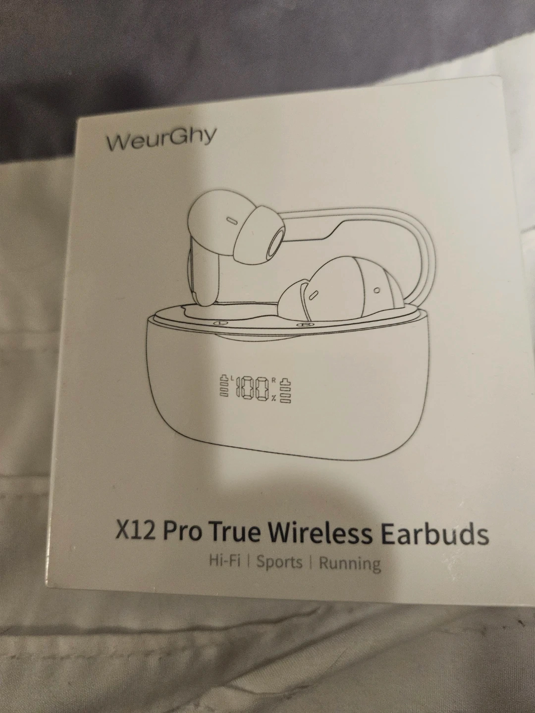 Selling a brand new pair of WeurGhy X12 Pro True Wireless Earbuds! They're perfect for sports and running, with a Hi-Fi sound quality.