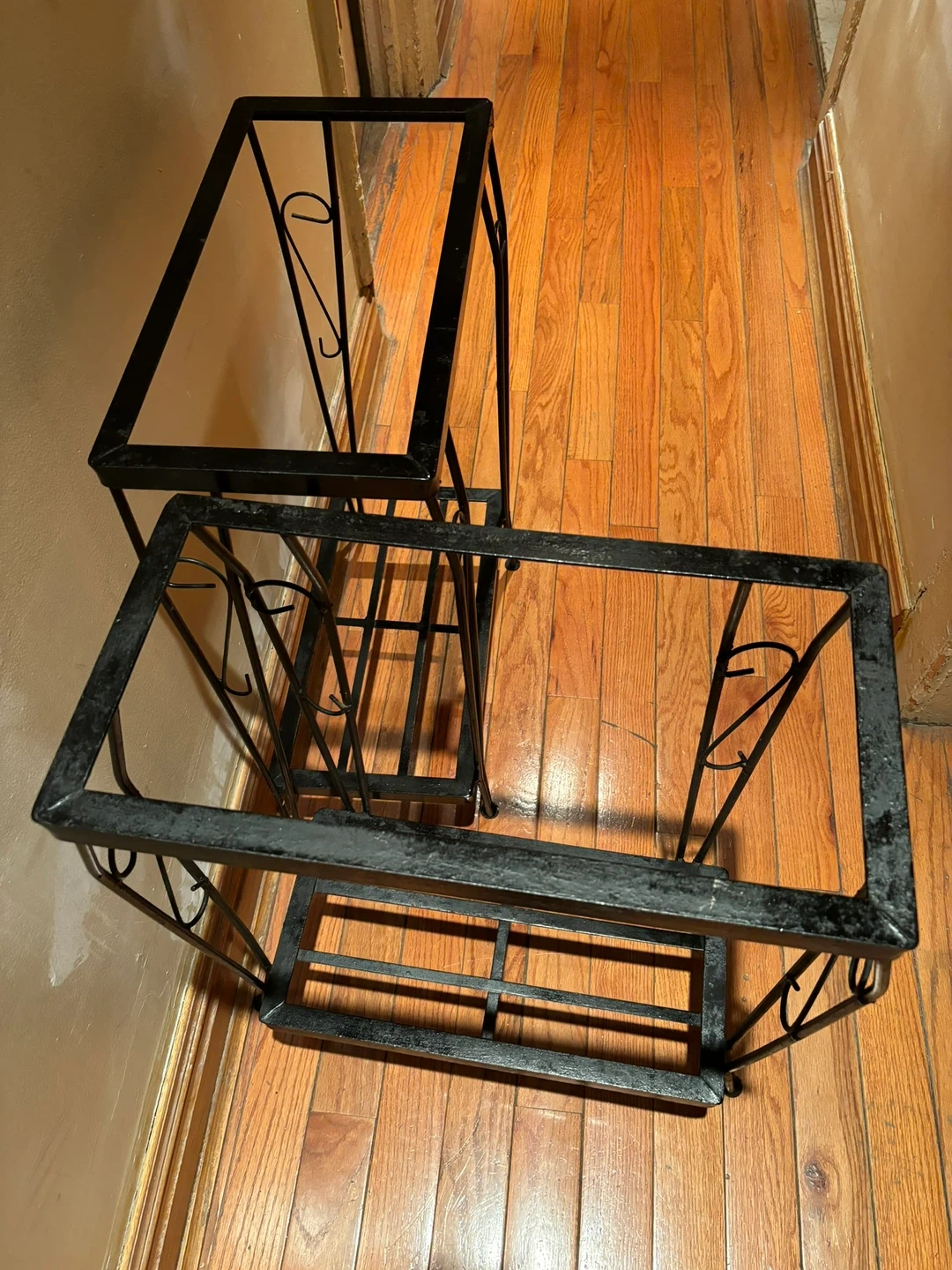 Selling a set of 2 black metal 20 fish tank stands. They're in great condition