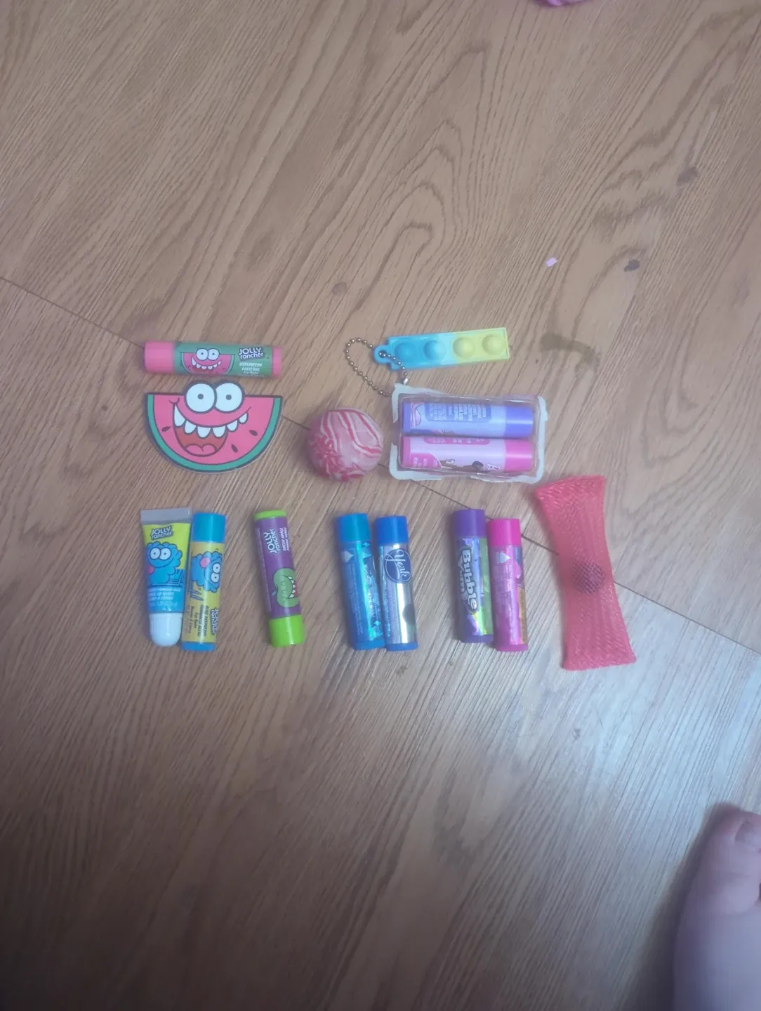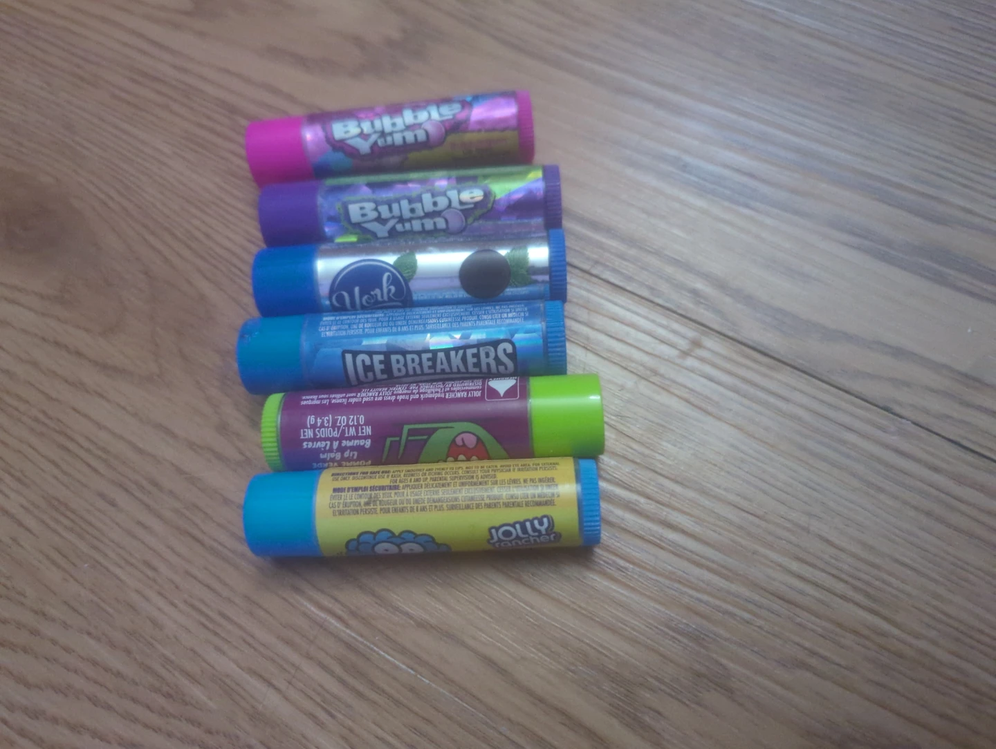 Selling a variety of lip balms! Includes brands like Jolly Rancher, Ice Breakers, and Bubble Yum. Great for keeping your lips moisturized!