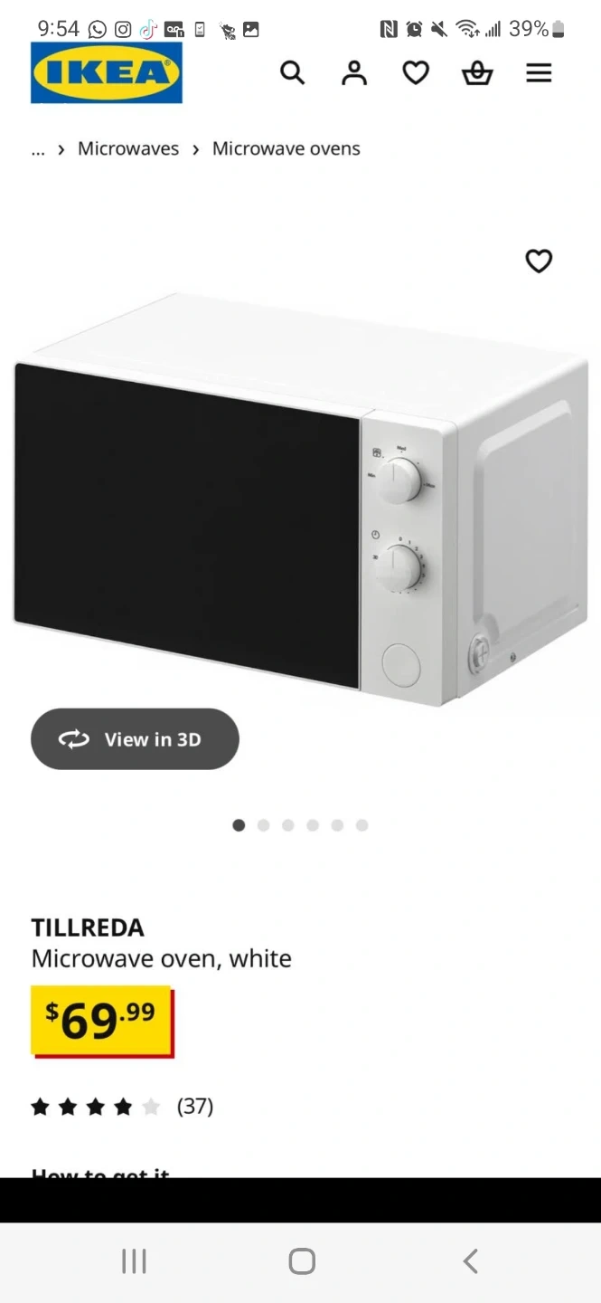Selling a white IKEA TILLREDA microwave oven. It's in great condition and ready for a new home! Originally bought for $69.99.use only one time.i moved so i have brand new with stove.cash only