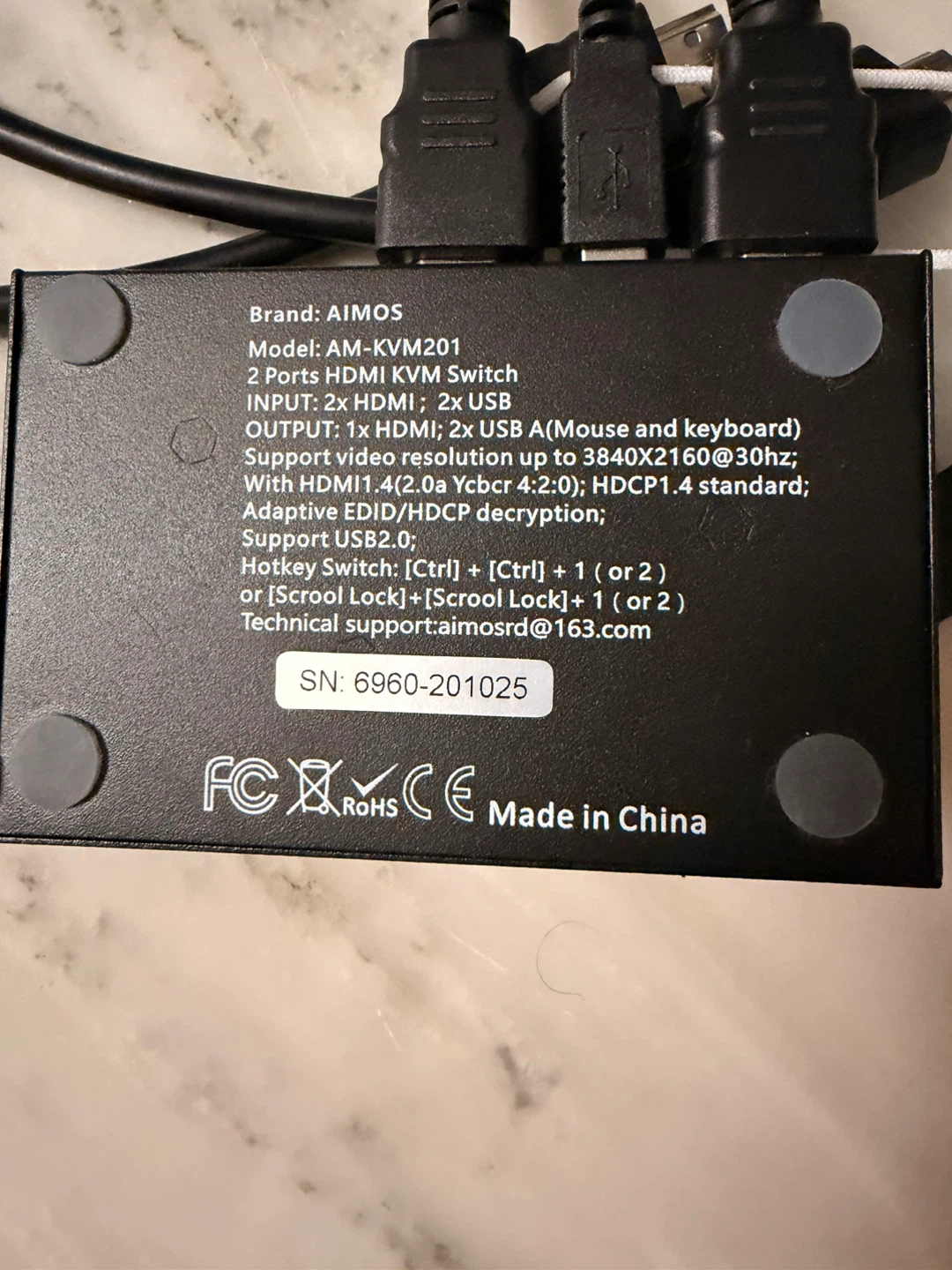 Selling an AIMOS AM-KVM201 2-Port HDMI KVM Switch.