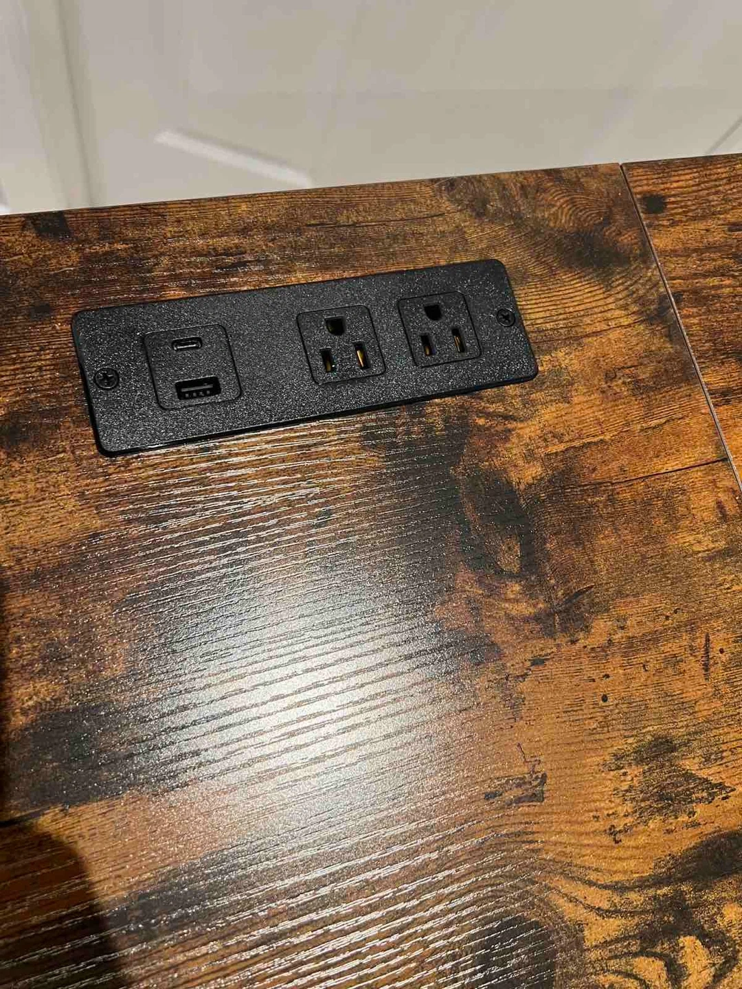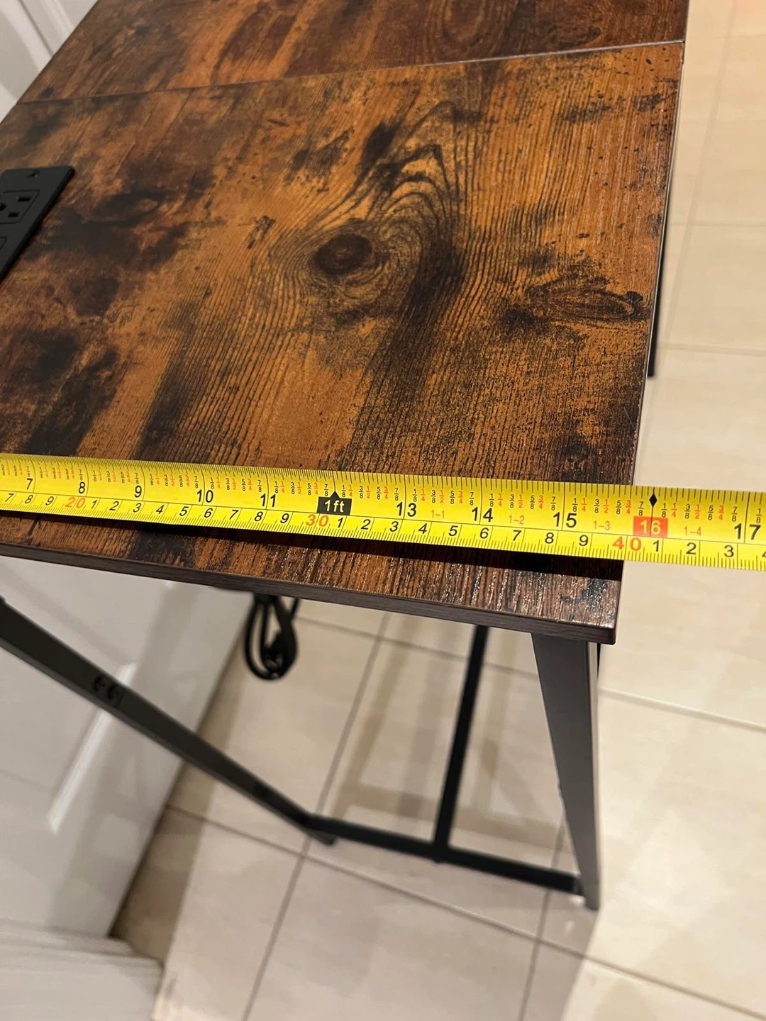 Brown Wood & Black Metal Desk with USB Ports