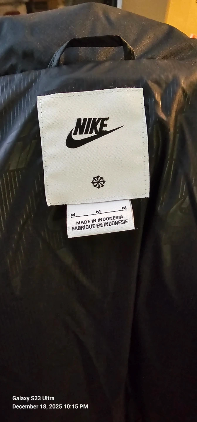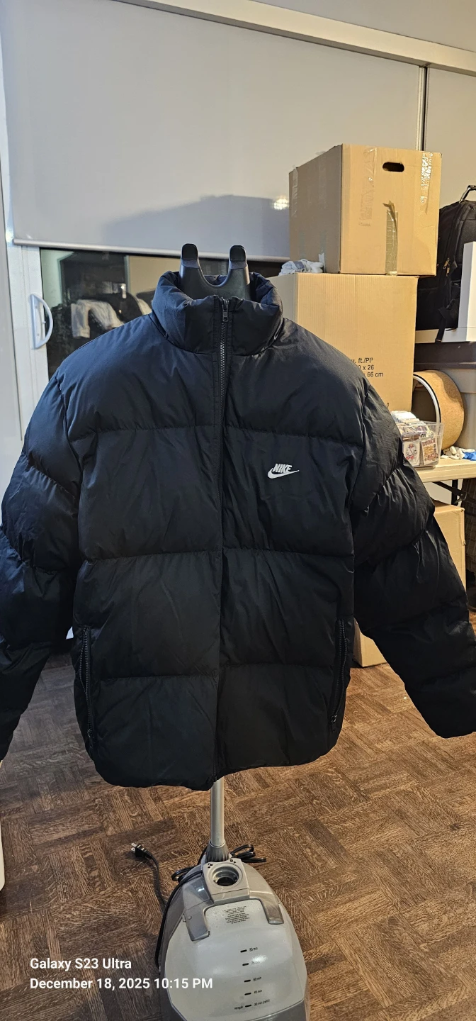 Selling a Nike puffer jacket in size medium! It's in great condition and ready to keep you warm this winter. The classic Nike logo is subtly placed on the front. Perfect for everyday wear!