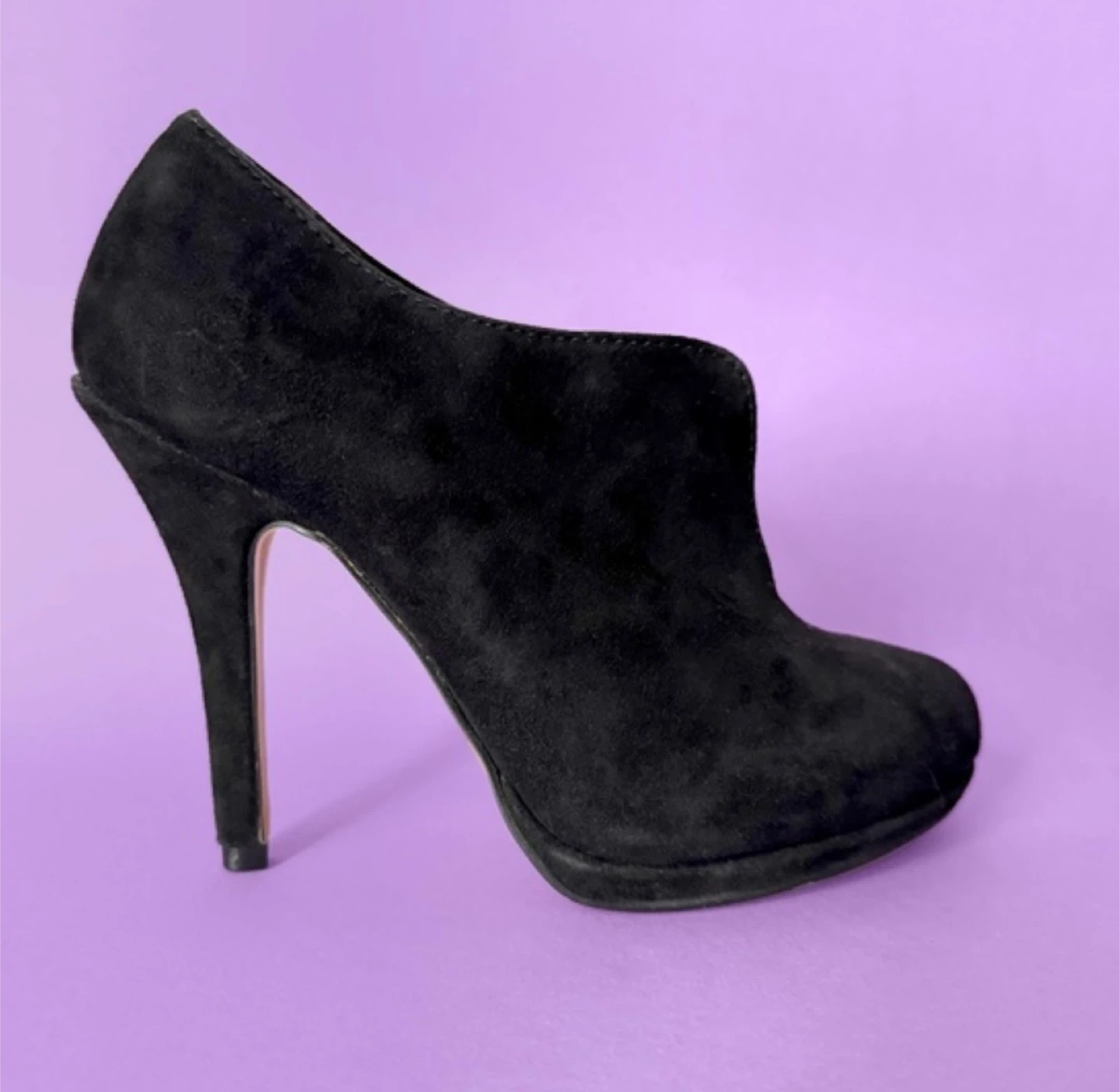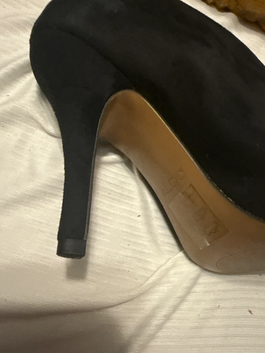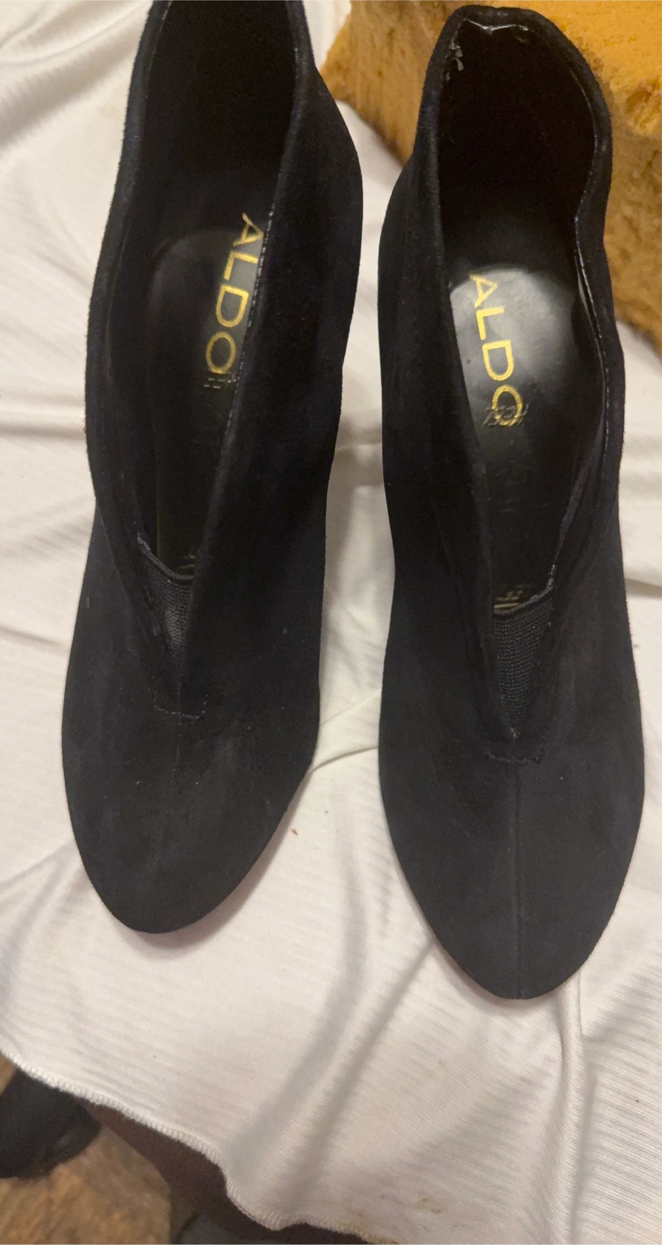 Selling a pair of Aldo black suede heeled booties! They're in great condition and would be a stylish addition to any wardrobe