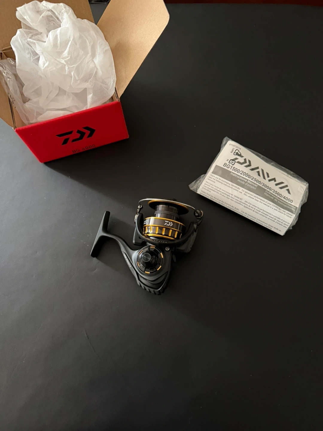 Selling a Daiwa BG 4000 spinning reel. It's in like new condition and comes with the original box and included components. This reel is known for its durability and smooth performance, making it perfect for various fishing applications!