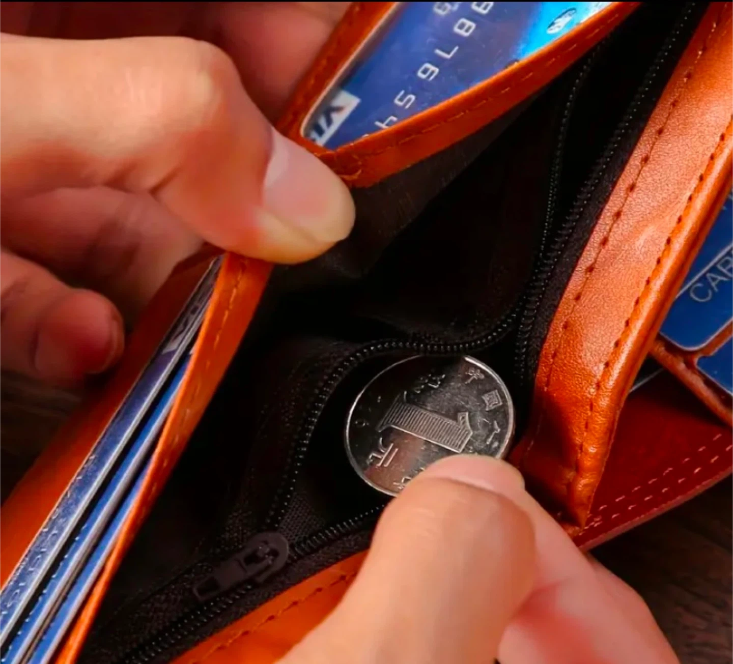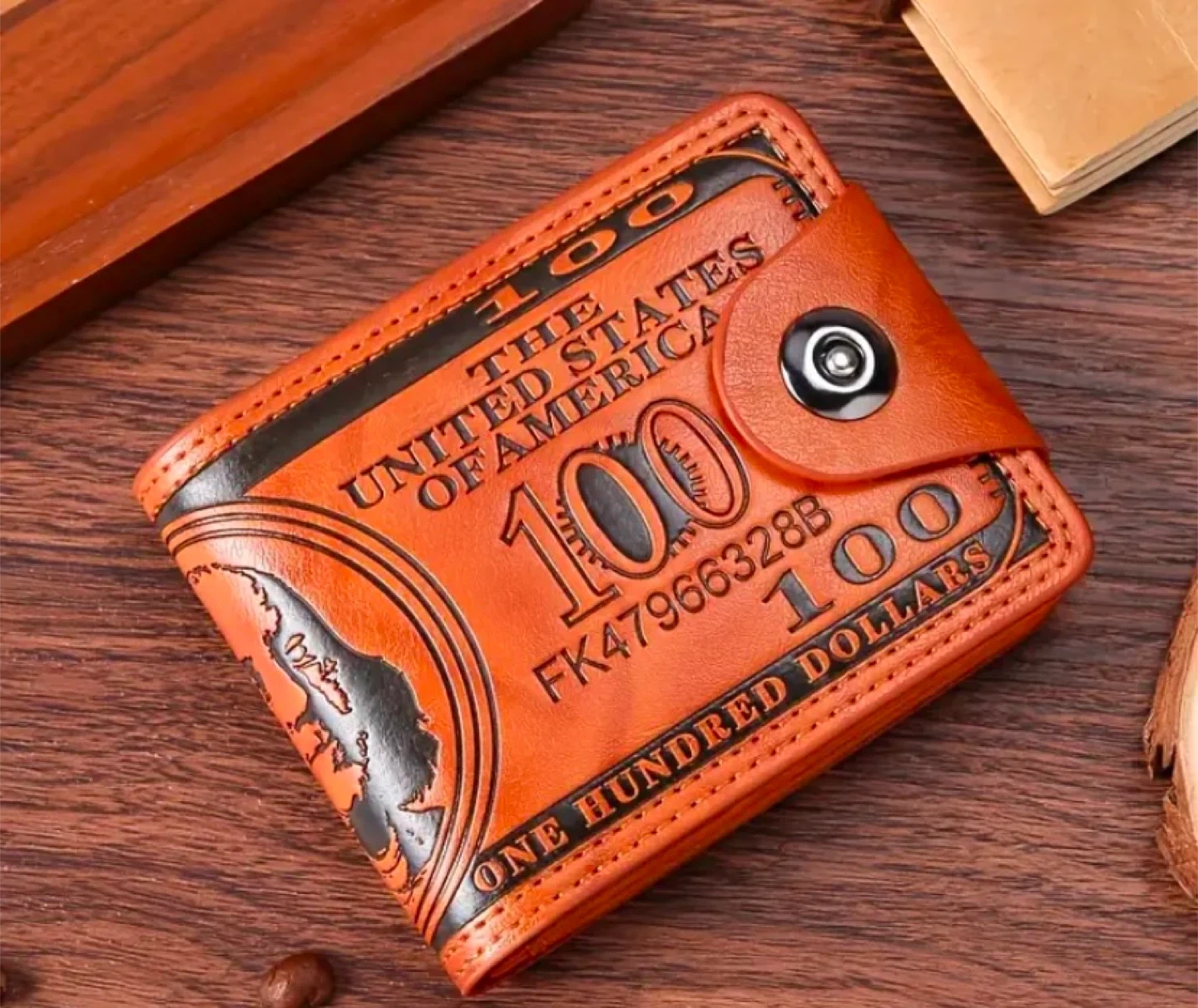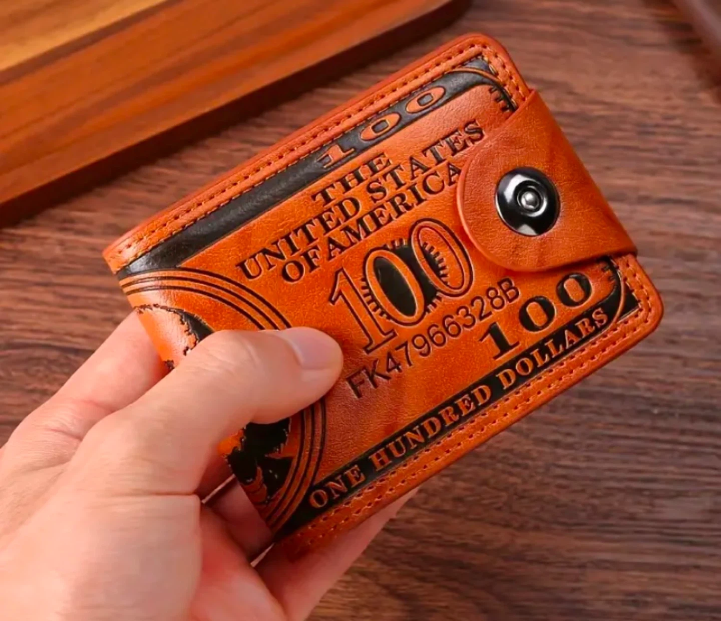 Here's a unique leather wallet with a United States of America design. It has slots for cards and a small zippered compartment for coins. It's in great condition and ready for a new owner!