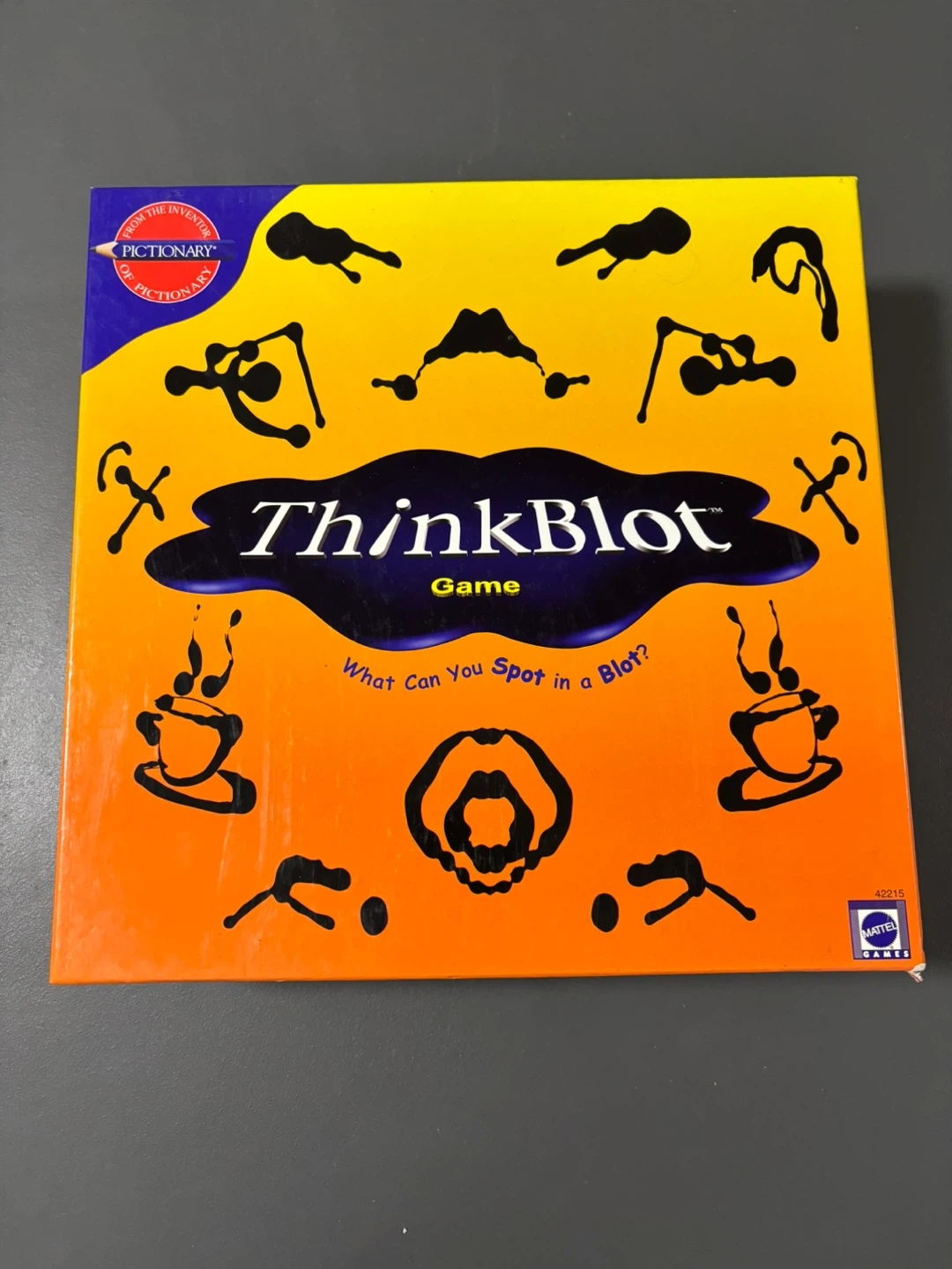 Selling the ThinkBlot game by Mattel! It's a fun game for adults and kids to play together. The game includes a spiral binder with 75 ThinkBlot images, dice, instructions, clip for easel set-up, full set of cards, scoring paper, and pencils