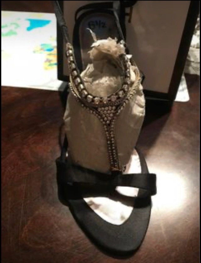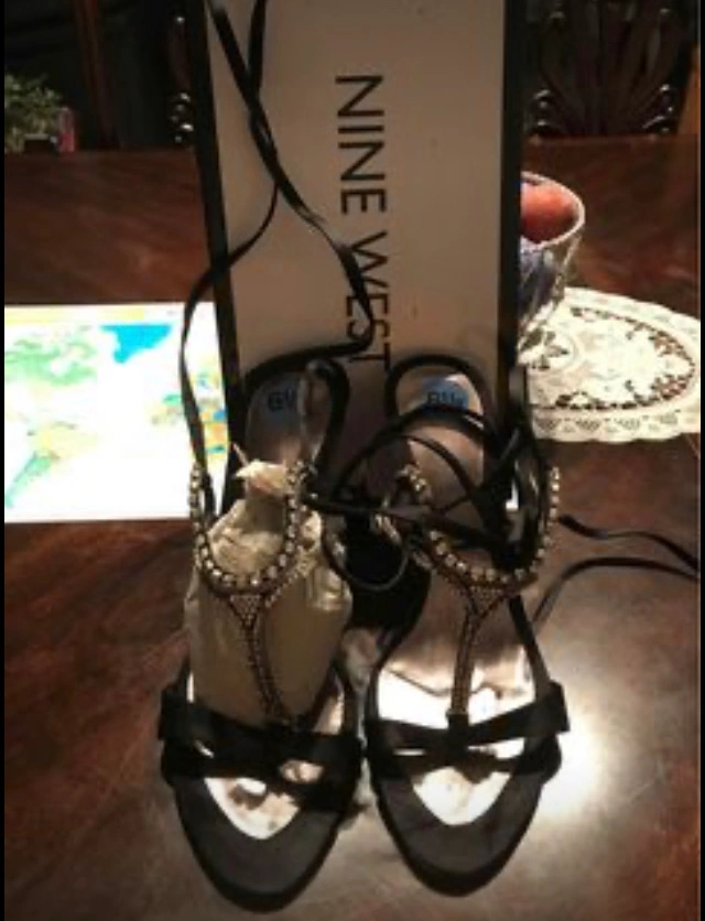 Nine West black satin with crystals with ankle strip wires is excellent. I got the gift from my daughter but it is not fit my foots. Size 6 and half.
