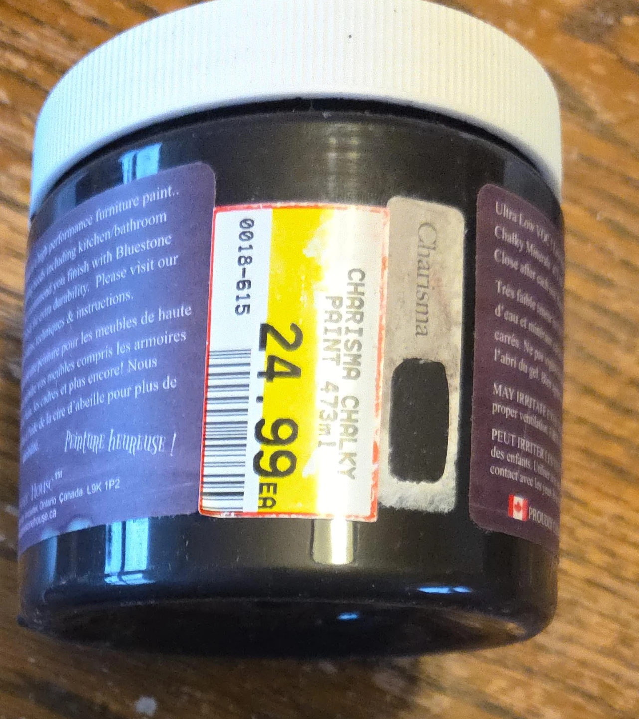 Selling a jar of Charisma Chalky Paint, 473ml. It's a high-performance furniture paint that's great for kitchens and bathrooms. It gives you a beautiful finish with Bluestone for extra durability. Retails for $24.99
