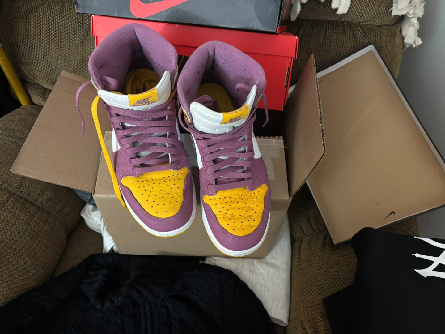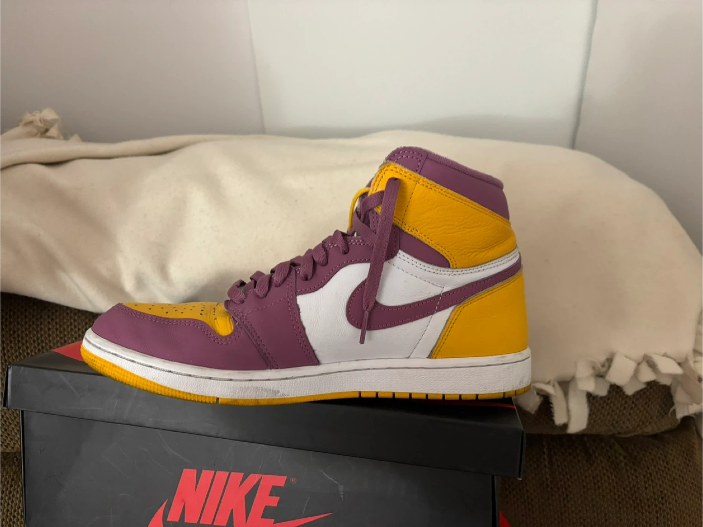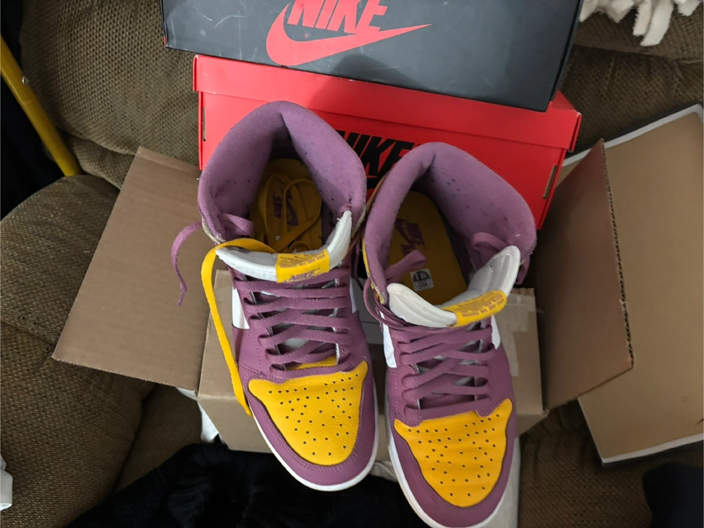 Selling a pair of 10.5 Nike Air Jordan 1 High OG in the Lakers colorway. They come with the original box. Feel free to message me with any questions!