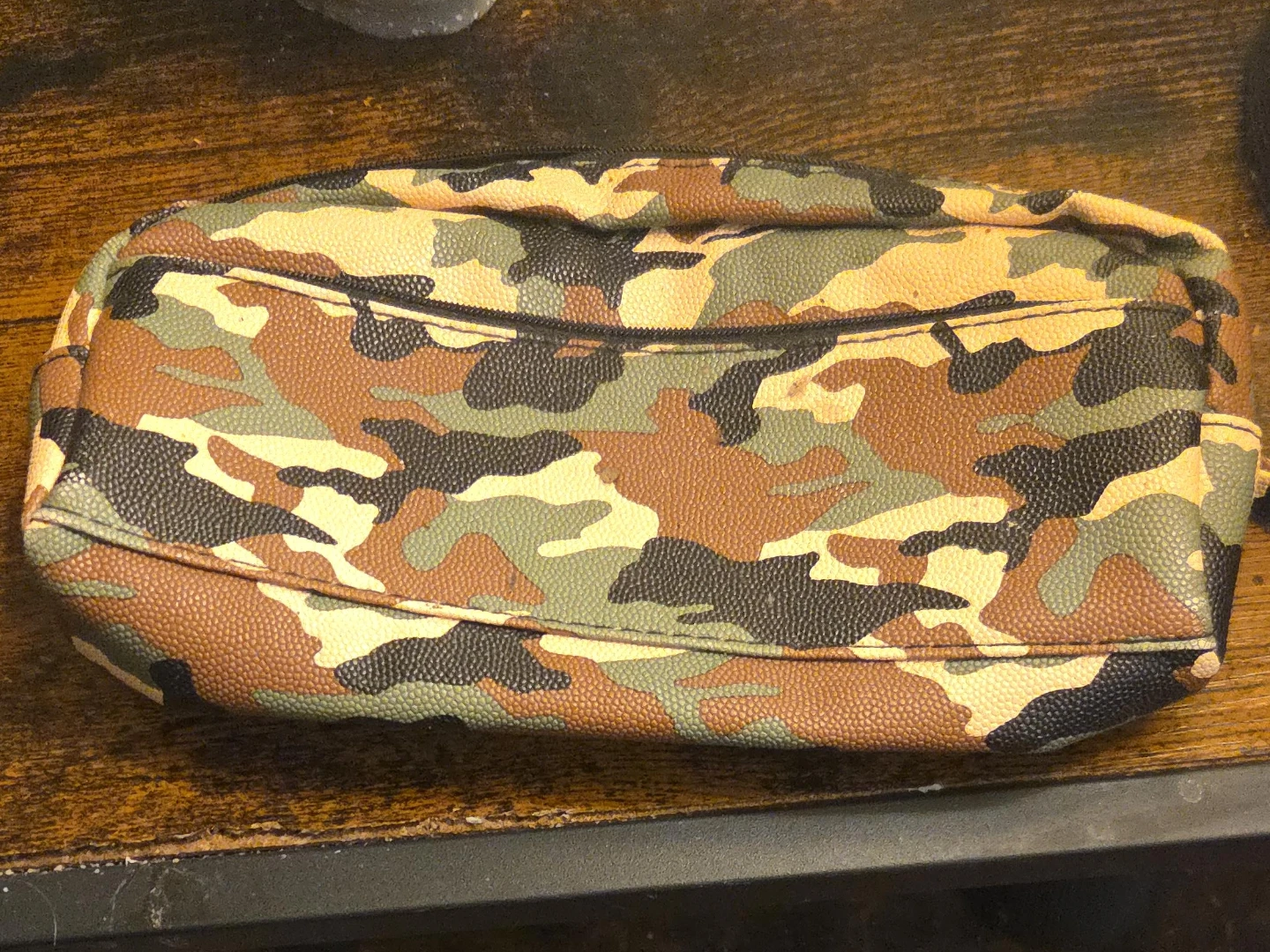 Here's a pouch with a camouflage pattern! It's in great condition and ready for a new owner. Perfect for storing small items or cosmetics