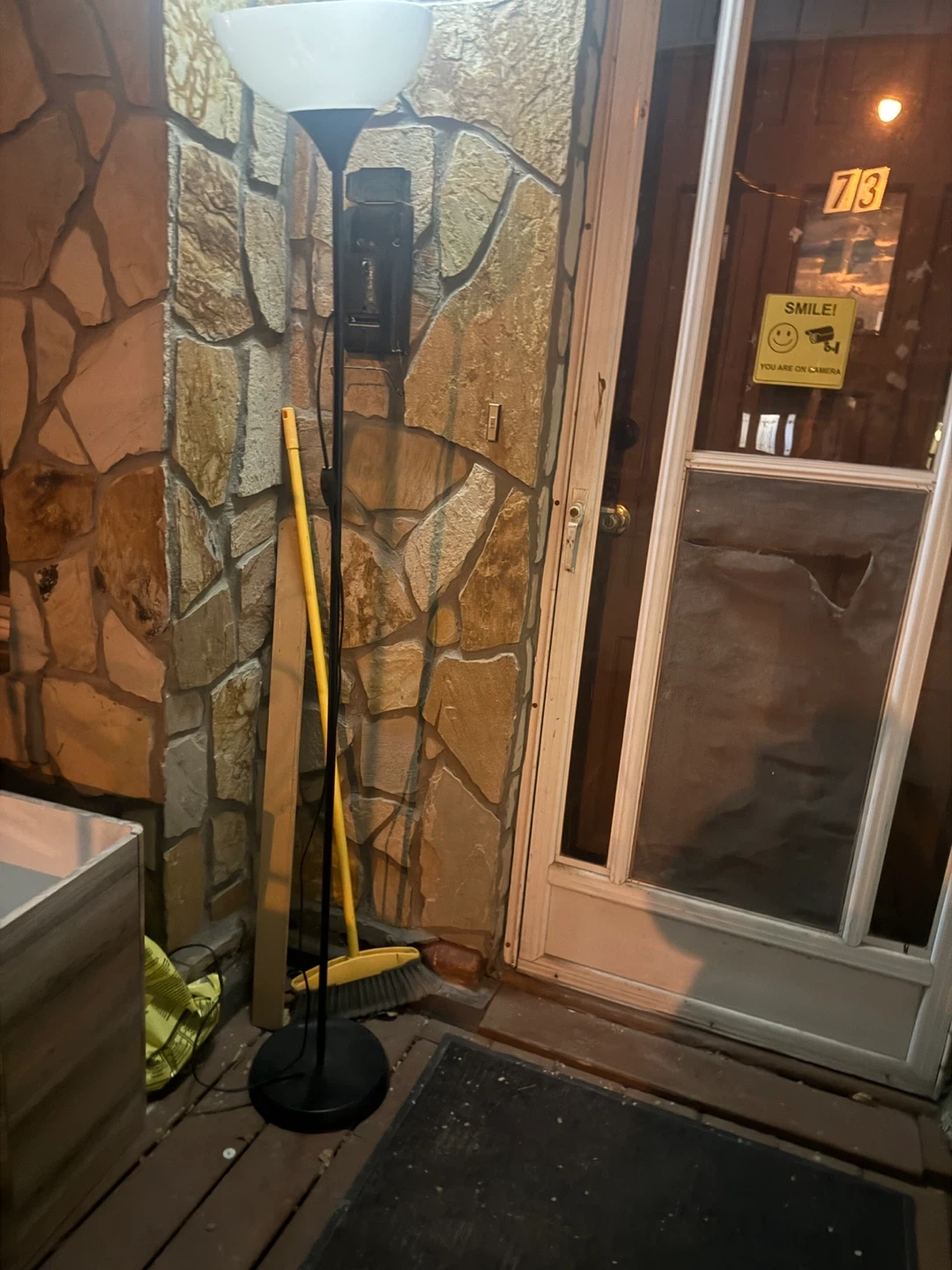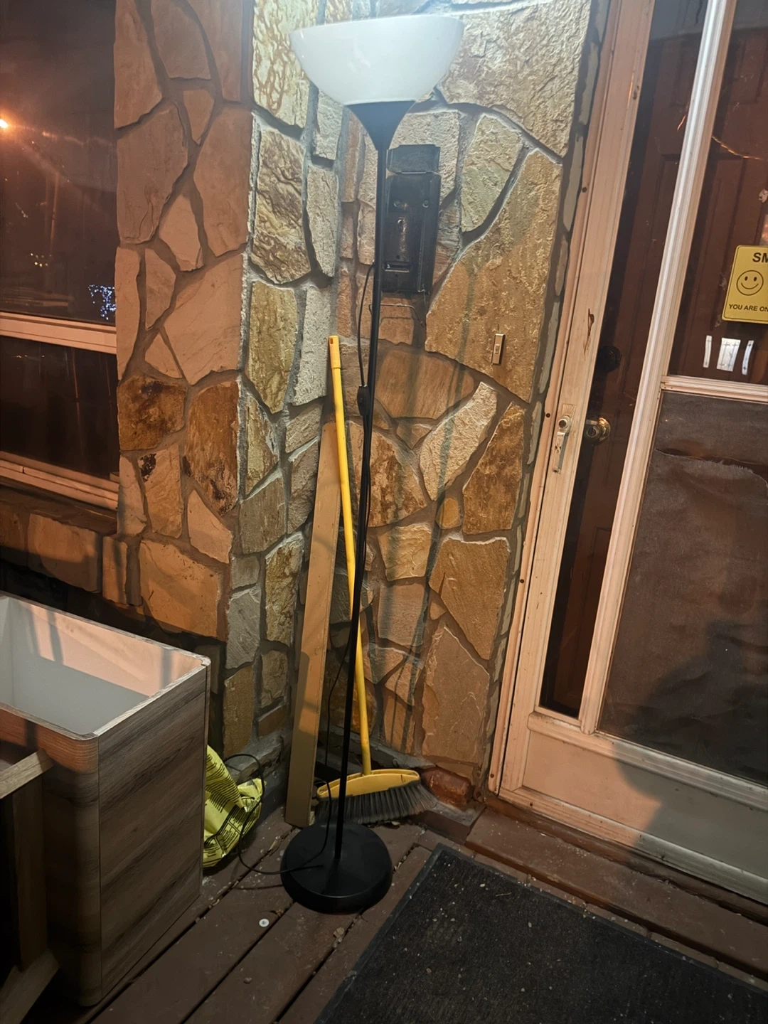 Selling a torchiere floor lamp in black. It's in good condition and provides a nice ambient light for any room!