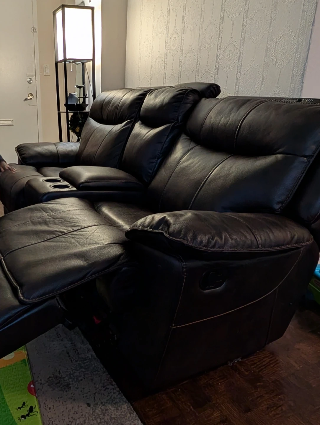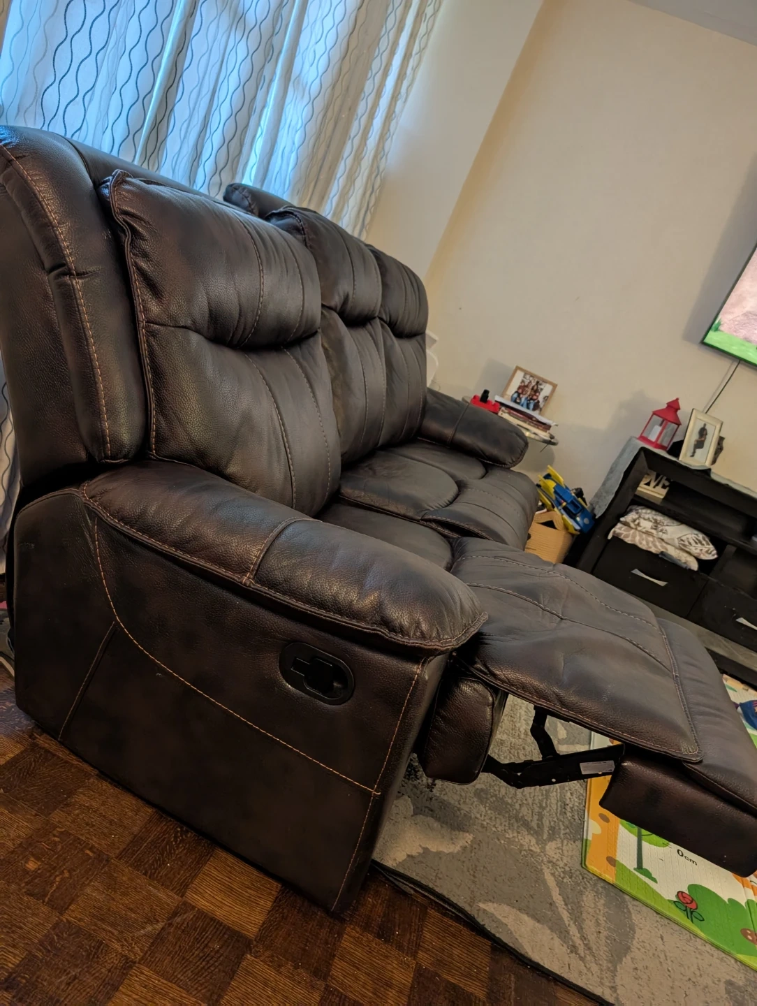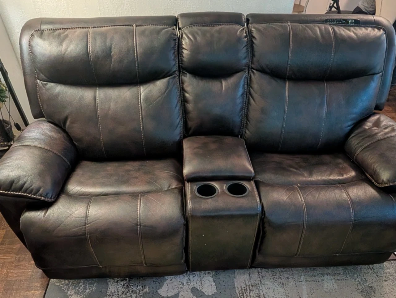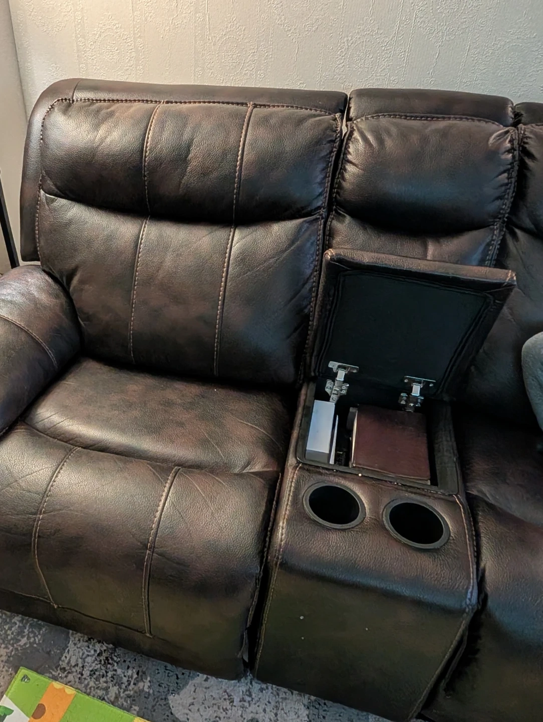 Selling comfy brown leather reclining sofas! The loveseat features a convenient centre console with cupholders, perfect for movie nights or relaxing with a drink. The sofa is in great condition and ready for a new home.