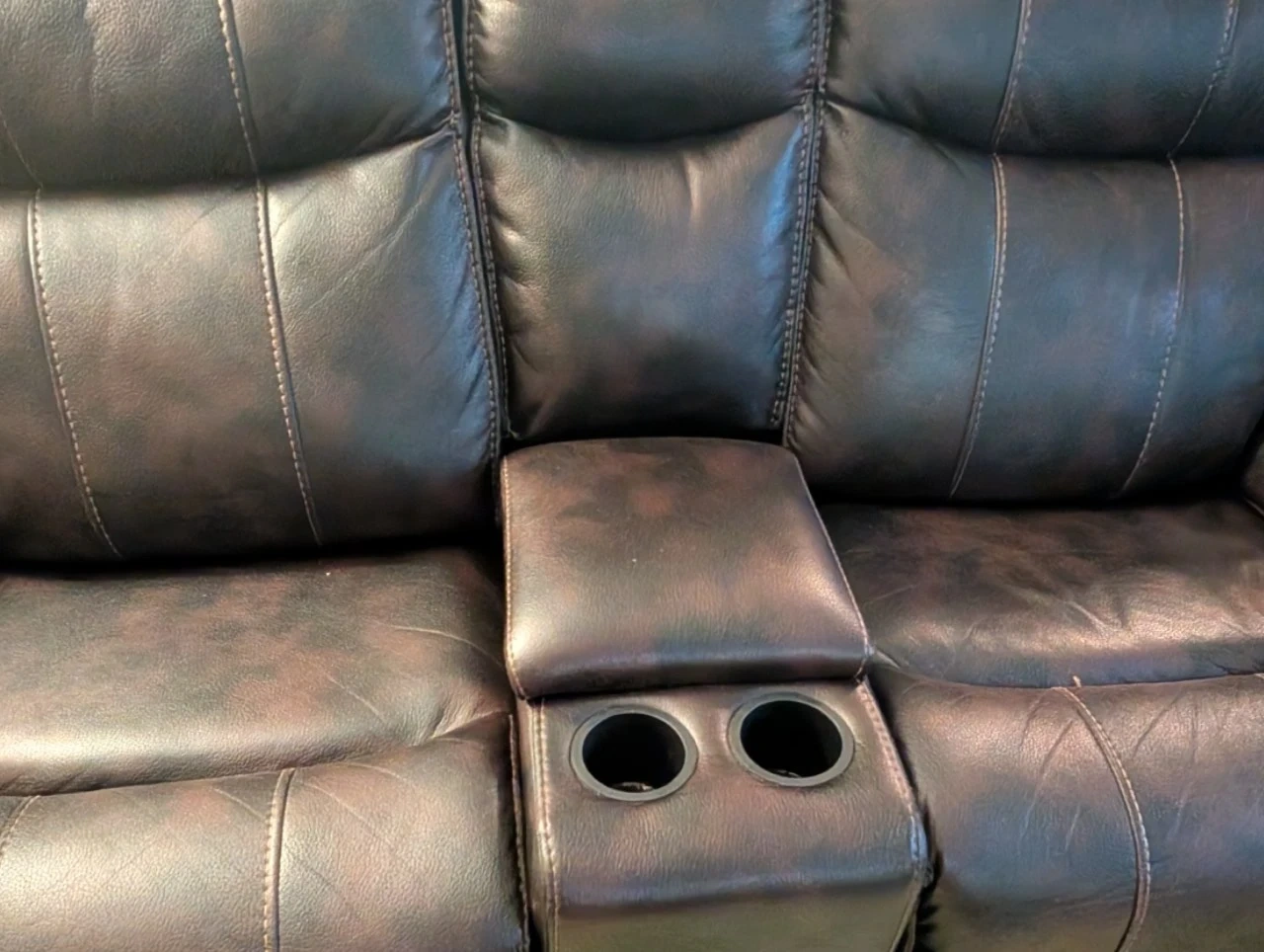 Brown Leather Reclining Sofa with Console